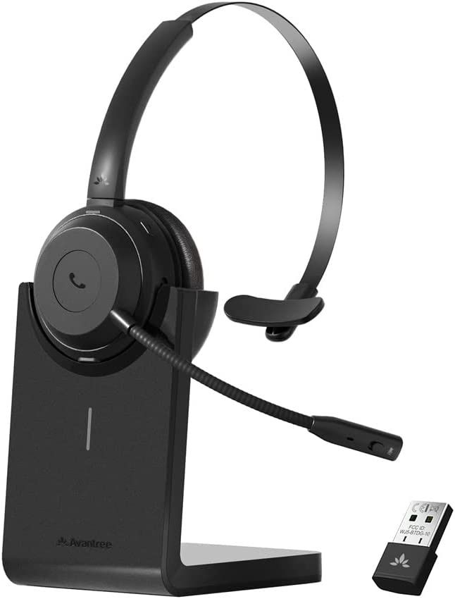 Bluetooth headset with USB adapter &noise cancellation Microphone. Support Phone and PC simultaneously. Mute switch, Busy light also compatible wired uses for laptop