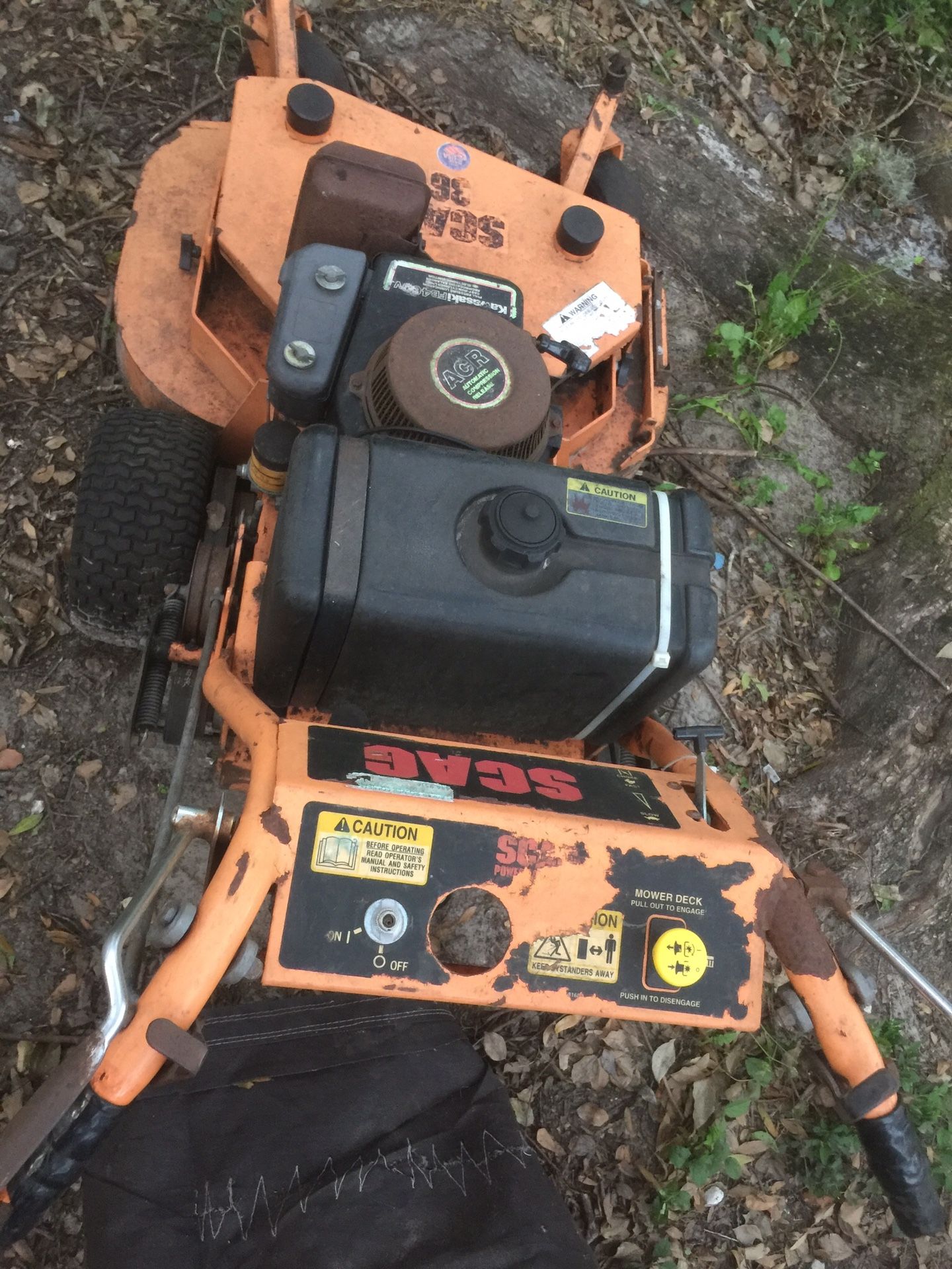 Scag Mower, 36” Walk Behind Mower. It’s been a great machine! It Needs a little TLC to get it in great running condition again, which is reflected in the discounted price. I know it needs a deck pulley and the carb cleaned, and it has sat for a couple seasons, which can take a toll on equipment. If you’re handy this could be a fantastic opportunity for you!