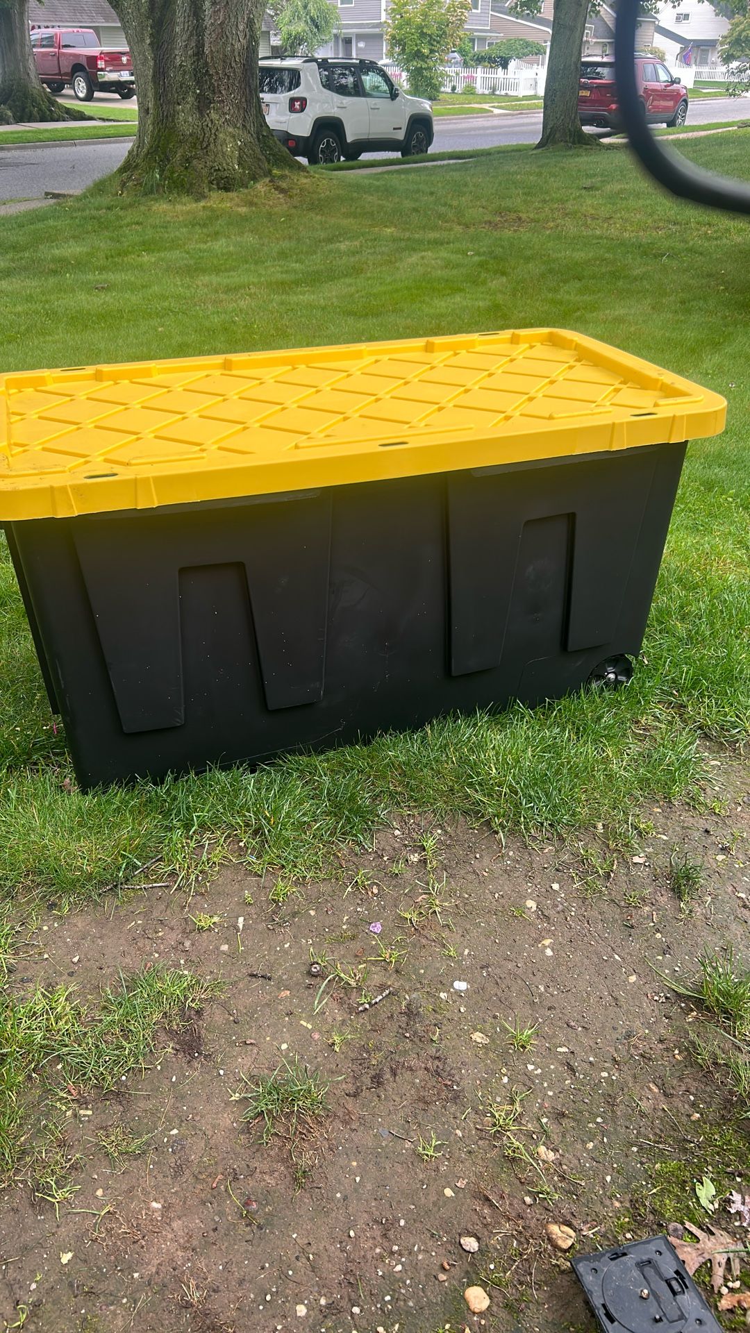77 Gal. Tough Storage Tote with Wheels in Black with Yellow Lid
