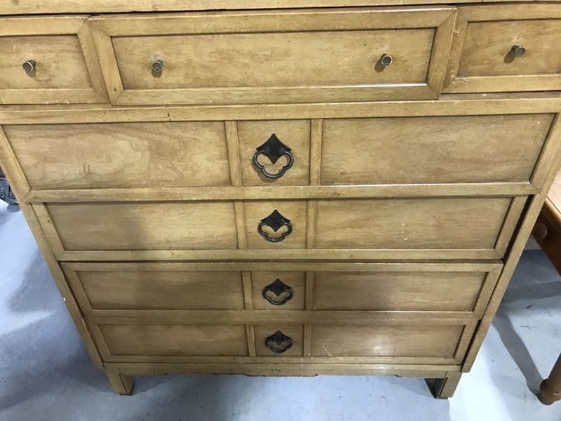 Solid wood tall dresser as pictured Dimensions 45" tall 40" wide 20" deep Excellent condition Cash or trade iPhone iPad MacBook Pro Delivery available
