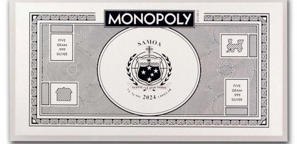 5 Gram 2024 Monopoly .999 Silver Note COA BU UNC 10,000 Minted