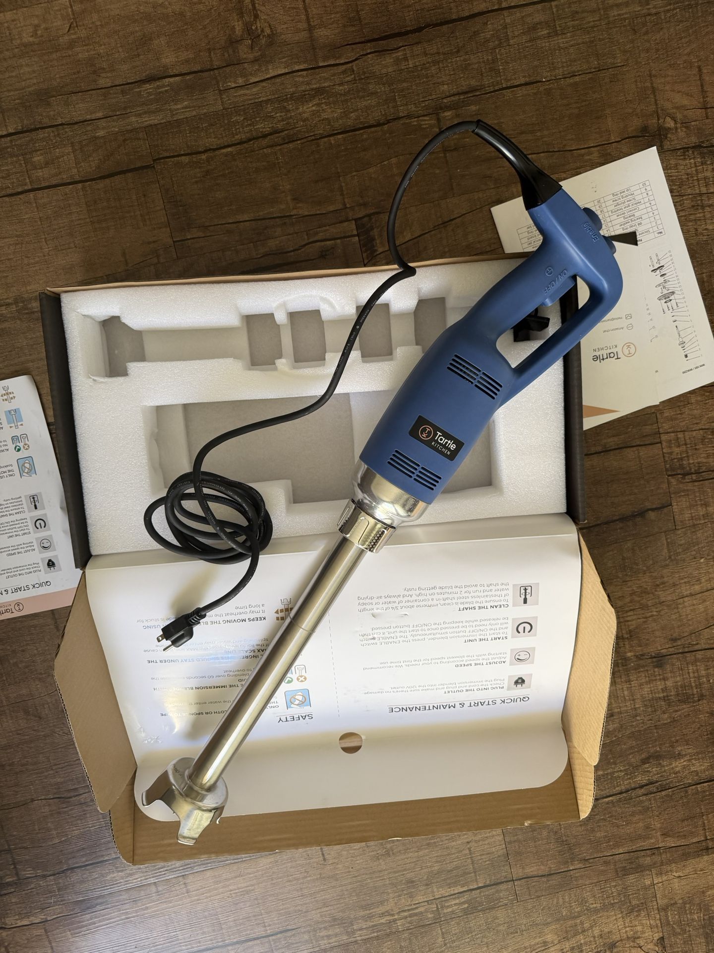 This immersion blender is practically brand new. We used it once, cleaned it, and stored it in a box for a whole year.