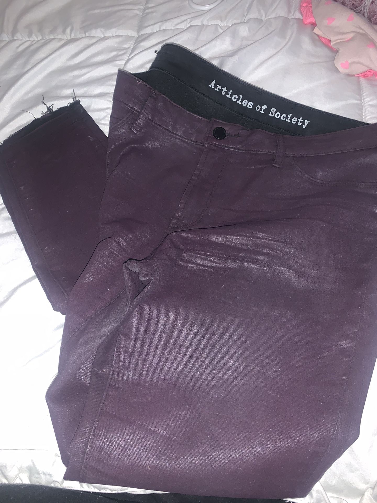 Womans brand new article of society coated jeans Color is plum They are brand new never worn but missing tag Bottoms are open hem style Very stretchy Waist is regular (not high waisted) Porch pick up in fredrickson off 176th