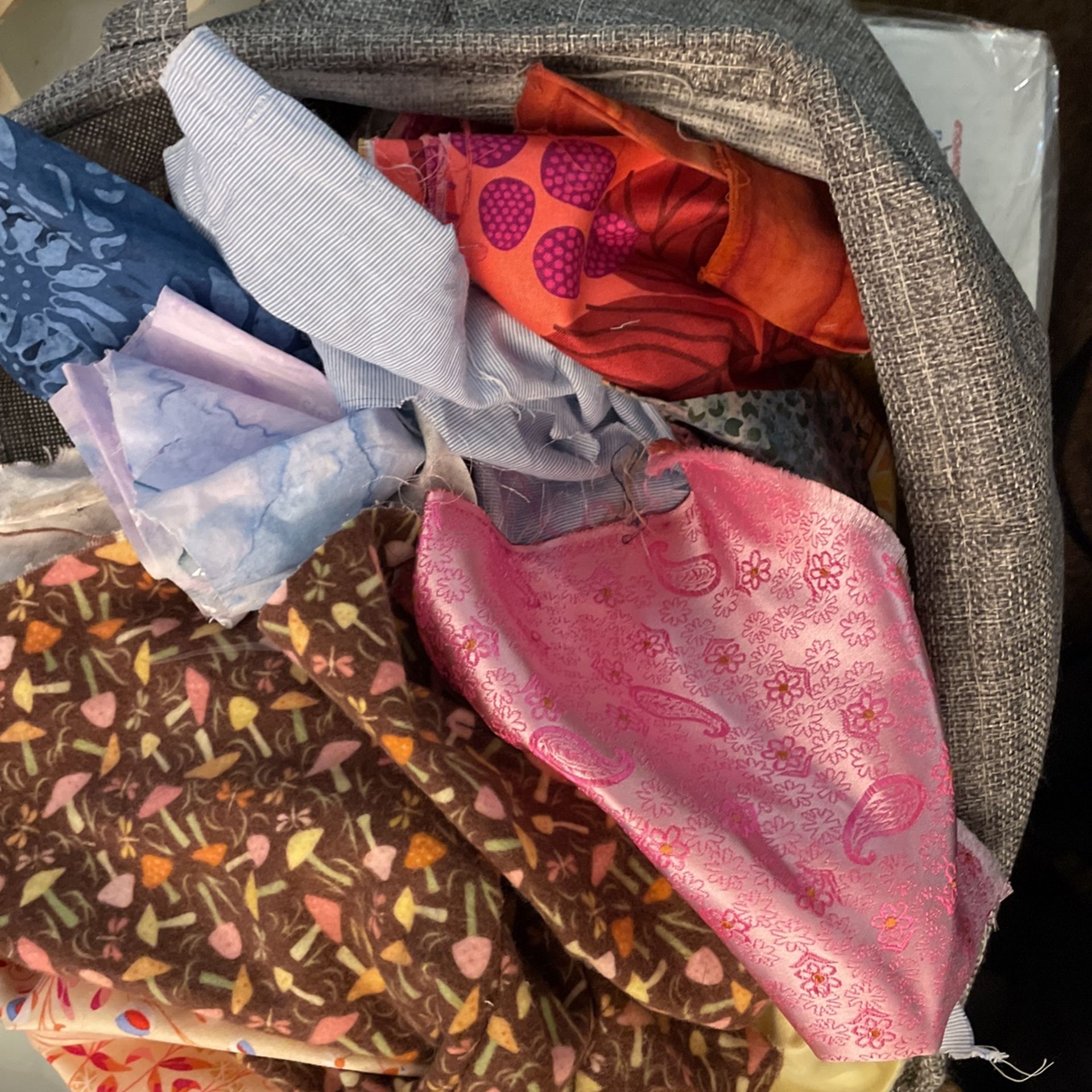 I have a bundle of fabric remnants, bearing sizes and cuts, mostly scraps, but some fat quarters