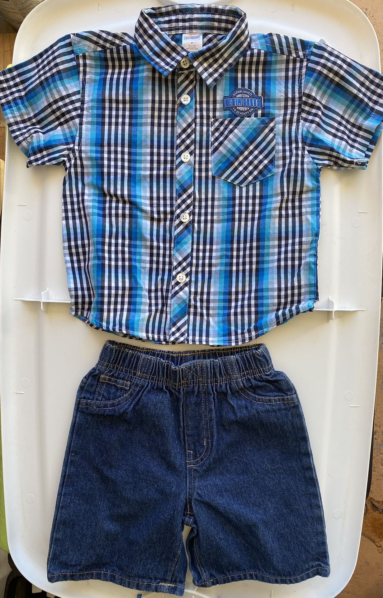 Denim shorts and button down shirt. Size 3T. Willing to bundle multiple items. H