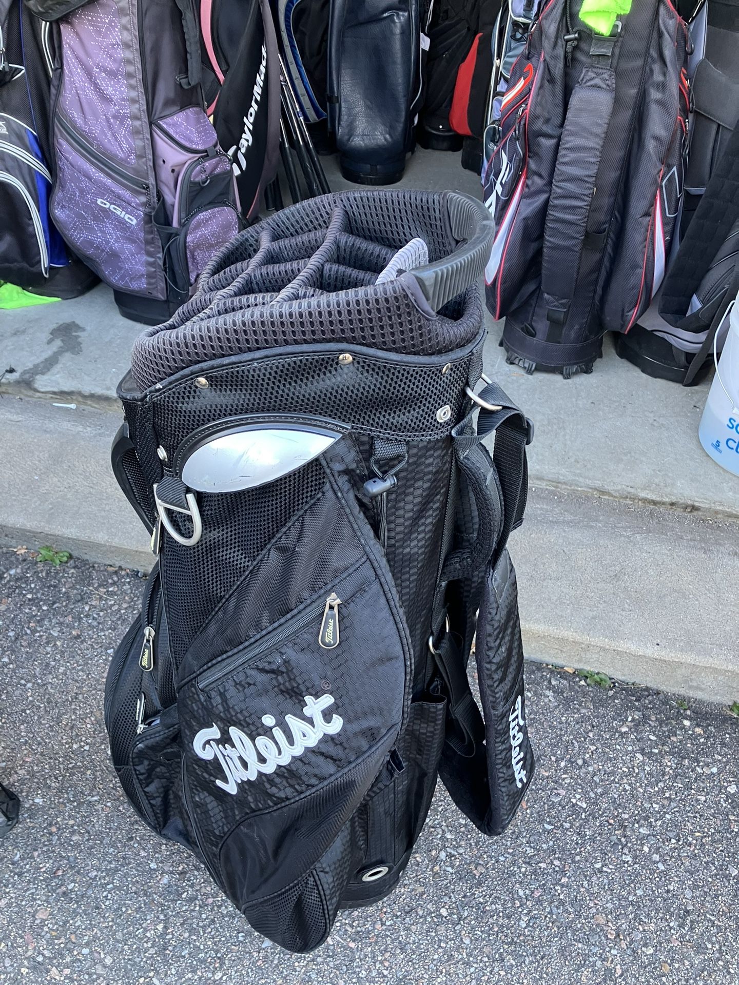 Titleist Cart Golf Bag 14 Plus Club slots 8 Heavy Duty Zipper Pockets Excellent Condition