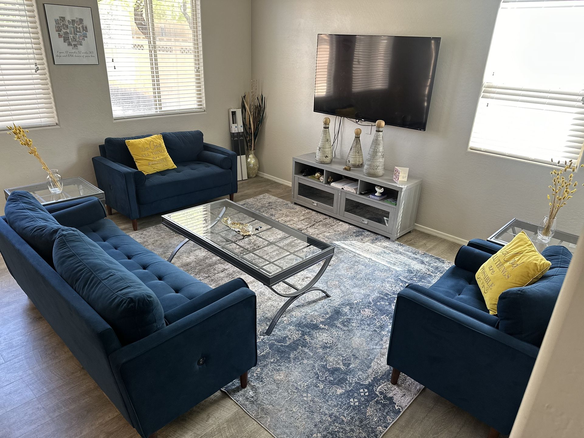 It’s the 3 piece couch combo color blue well maintained and recently professionally cleaned , absolutely no!! pet contact asking $1050 or best offer Delivery service available!!
