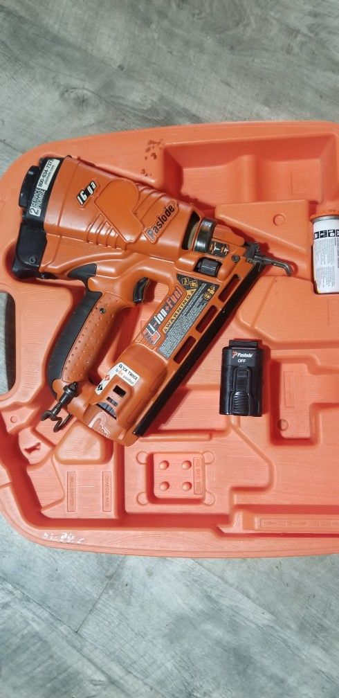 Paslode angle finish nails with one battery 16 gage good condition $100 ,if you want just the tool $80