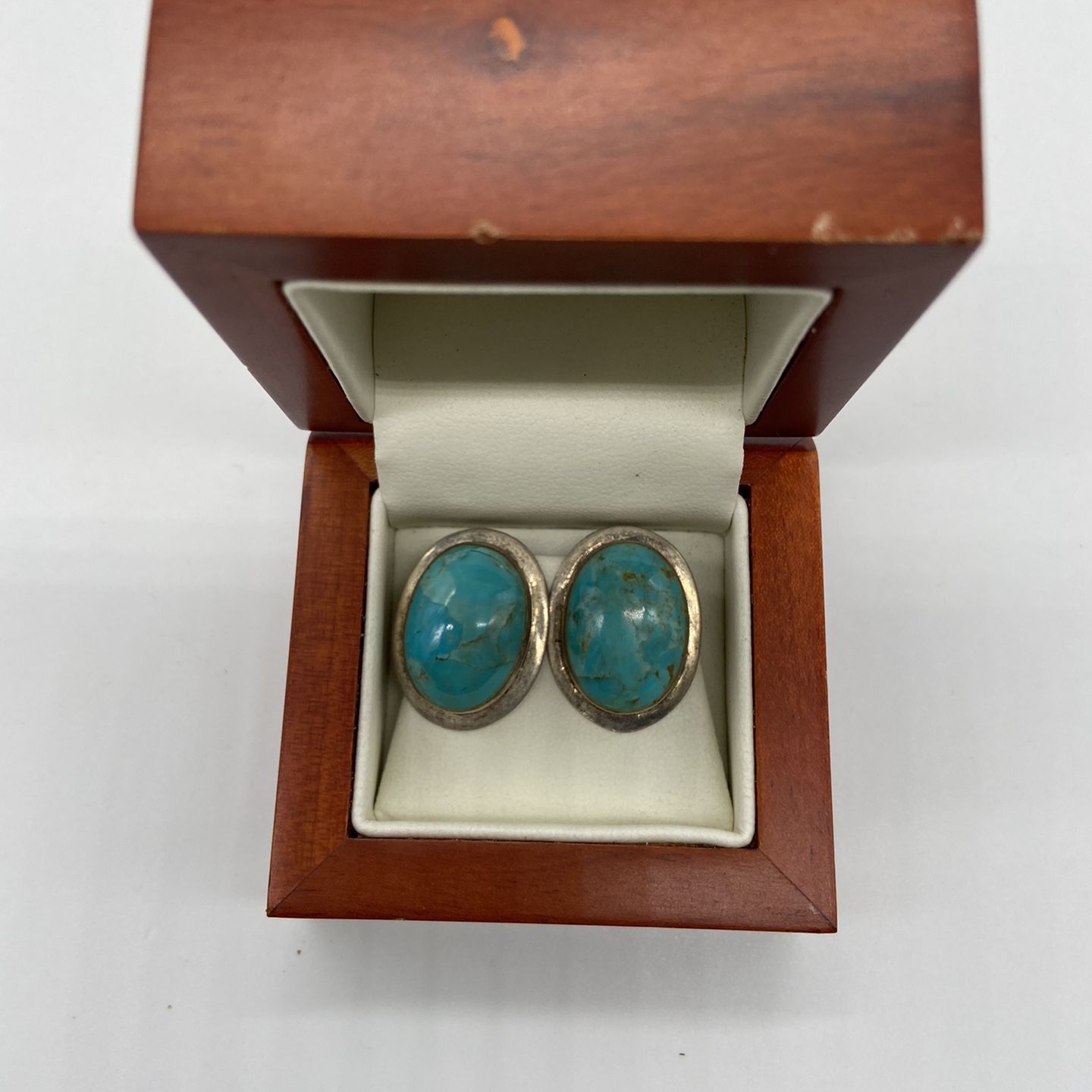 Real Turquoise Earrings Set In Sterling Silver
