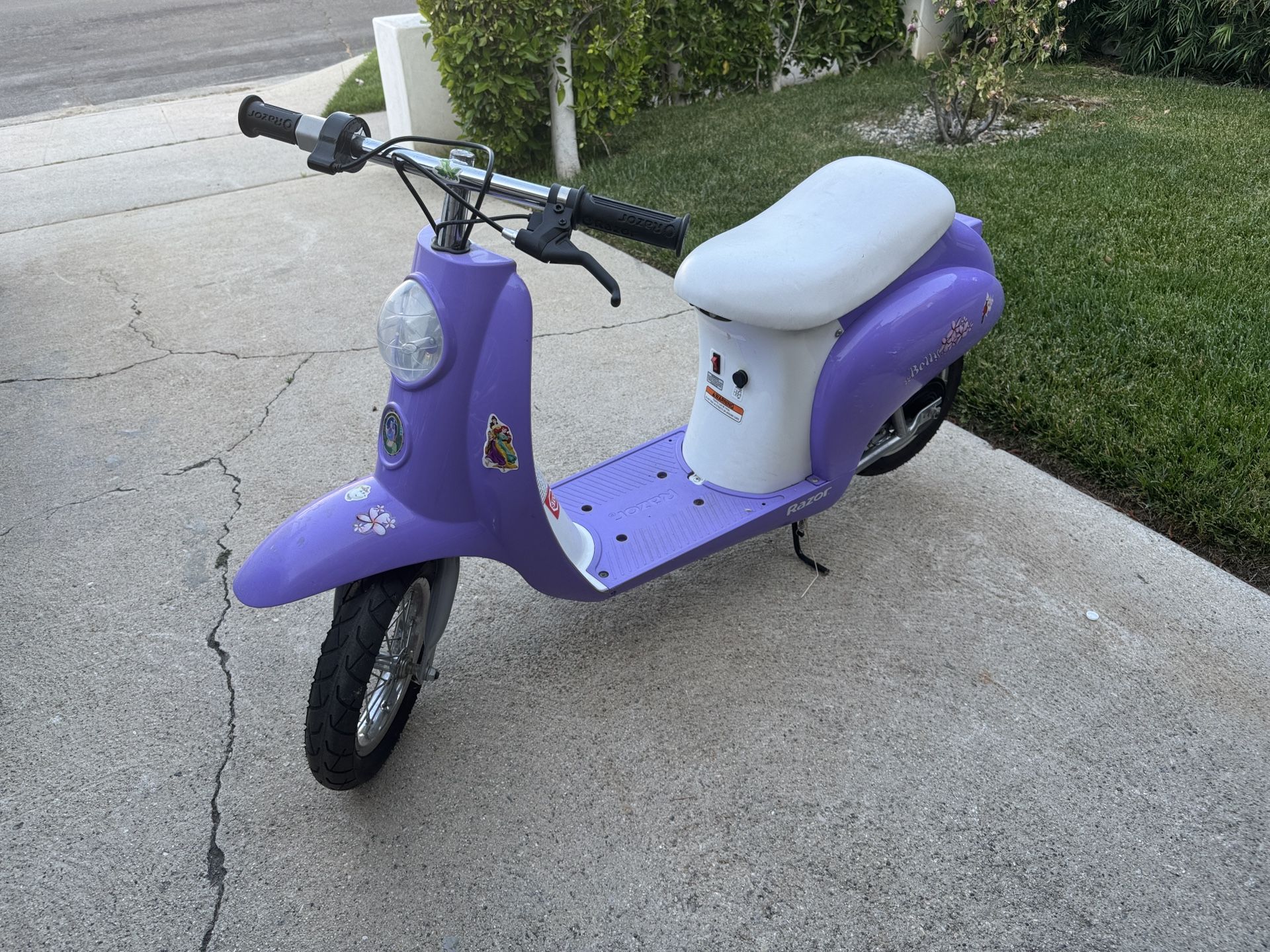 Stylish Euro-style 24V scooter in excellent condition – very clean and rarely used. Runs great, up to 15 mph with 40 mins of ride time. Has rear suspension, padded seat, and storage under the seat. Just charge and ride!