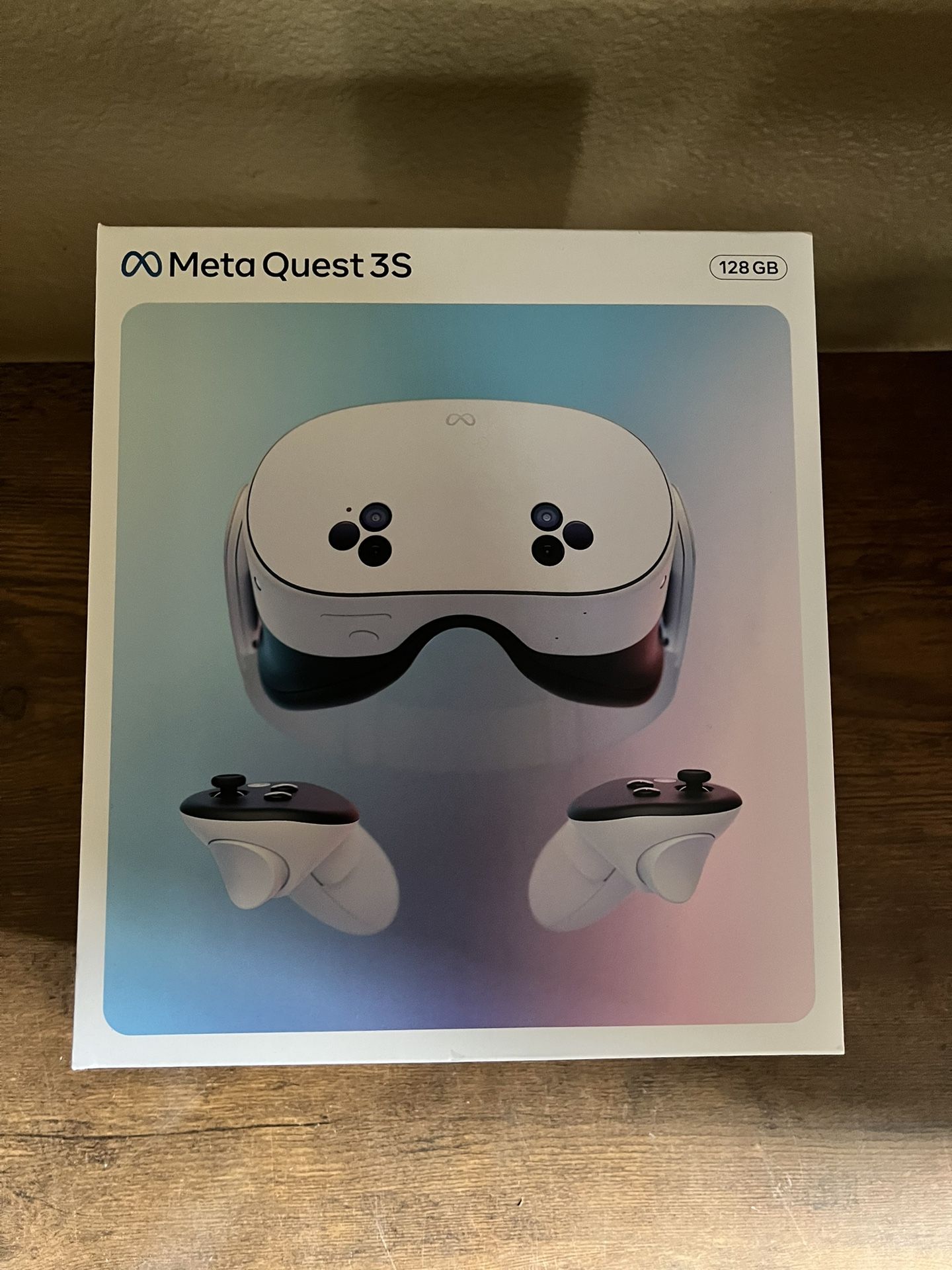 New in box still sealed purchase at target. What's in the box: ● Meta Quest 3S headset ● Standard Immersive Facial Interface (pre-installed) ● Glasses Spacer ● 2 Meta Quest Touch Plus Controllers (with AA batteries included) ● 2 Wrist Straps (pre-installed) ● Power adaptor ● Charging cable ● Includes 3 months free of Meta Horizon+