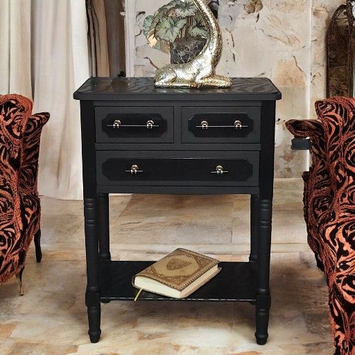 BLACK FRIDAY DISCOUNT ONLY!! ELEGANT BLACK SIDE TABLE WITH GOLD ACCENT HARDWARE