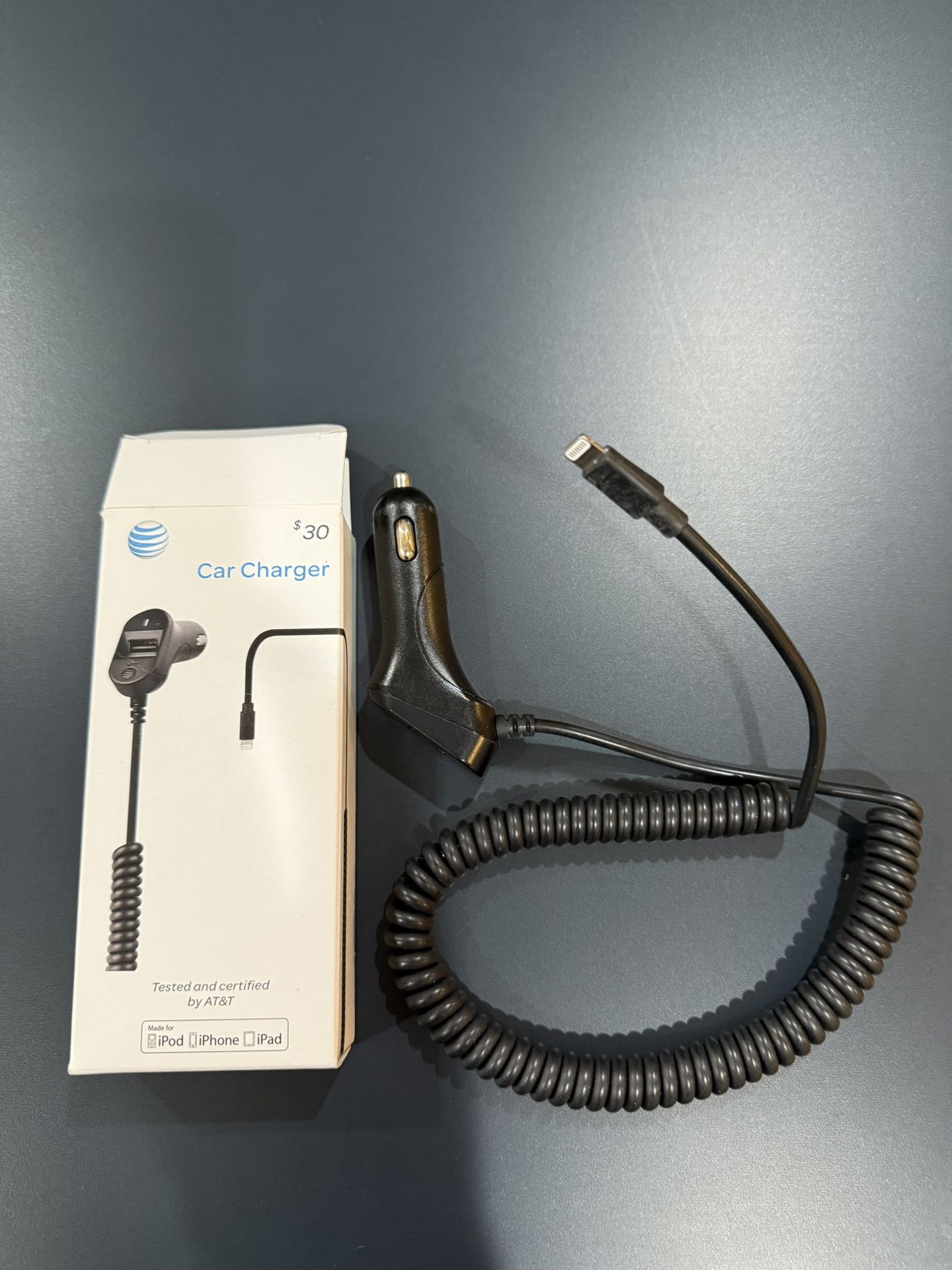 Dual car charger lightening and USB- charges 2 devices at once. Works on iPhones and iPads Good working condition Pick up at Kingsview Starbucks