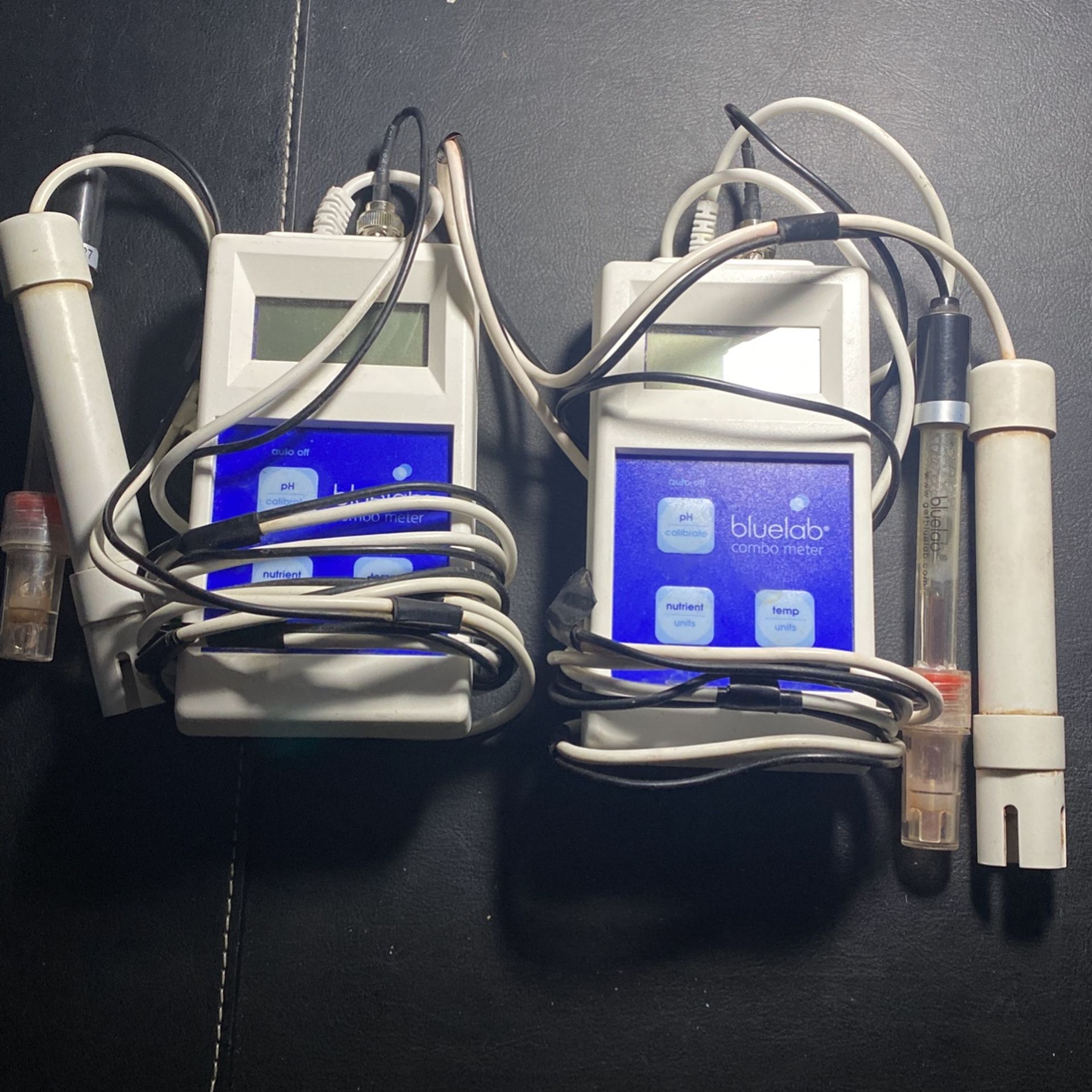 2 Bluelab Combo Meters, last time used both were working except one of the tester tubes was not working properly ( the tube needs to be replaced). Selling both together, since don’t know which tube is working and which one does not.