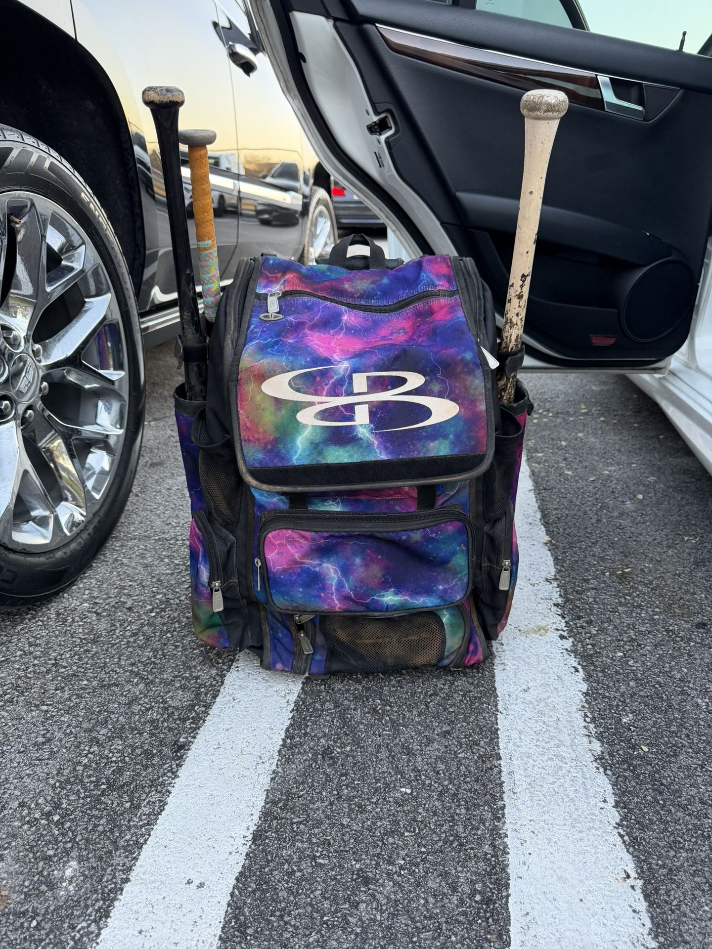 Boombah rolling baseball gear bag in good used condition. Plenty of space for equipment, multiple compartments, bat holders on both sides, and wheels for easy transport. Zippers and wheels work. Shows normal wear from use but still solid and ready for the season. Great for baseball or softball players. Pickup in Miami.