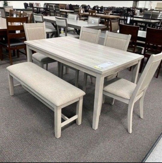 Solid Wood Dining Table Set 60x36x30 " 4 Chairs And Bench