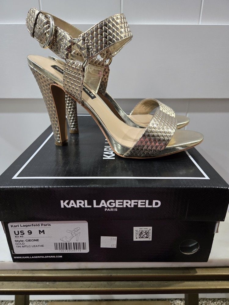 Karl Lagerfeld Paris Women's Cieone 9 Leather Heels Sandals Worn once. They are in great condition. Comes in the original box.