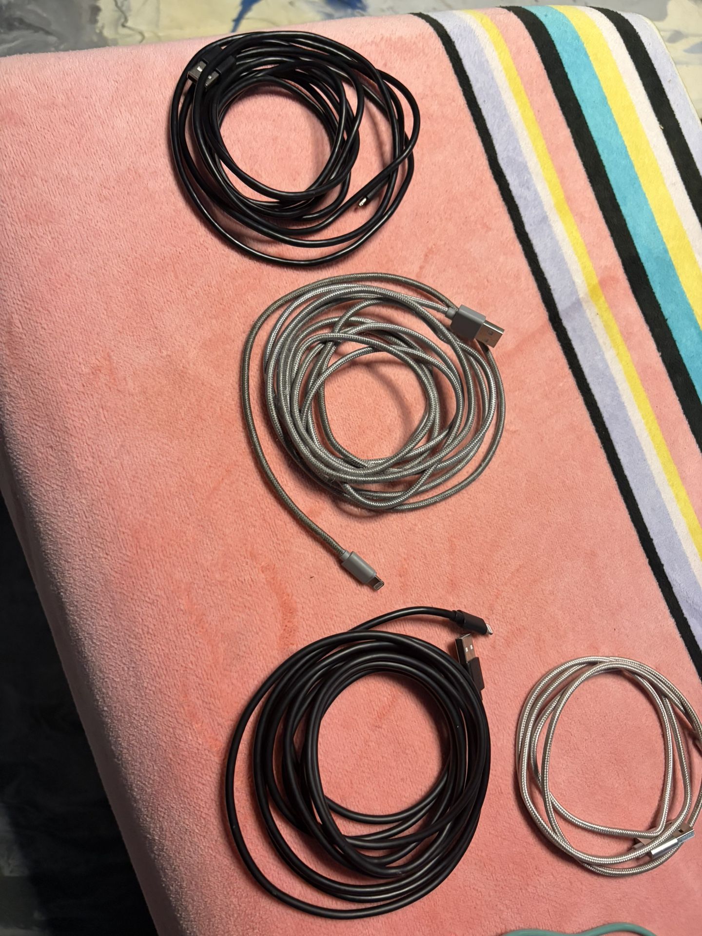 Changed phone, can’t use them. Three are 10ft. One 3 ft that came with phone and one car charger. Like new, two of the 10 ft were for back up. All for $25 Need them and serious? Home pick up in Stuart. Cash only. Checkout my other posts on here, so much more to see in person!