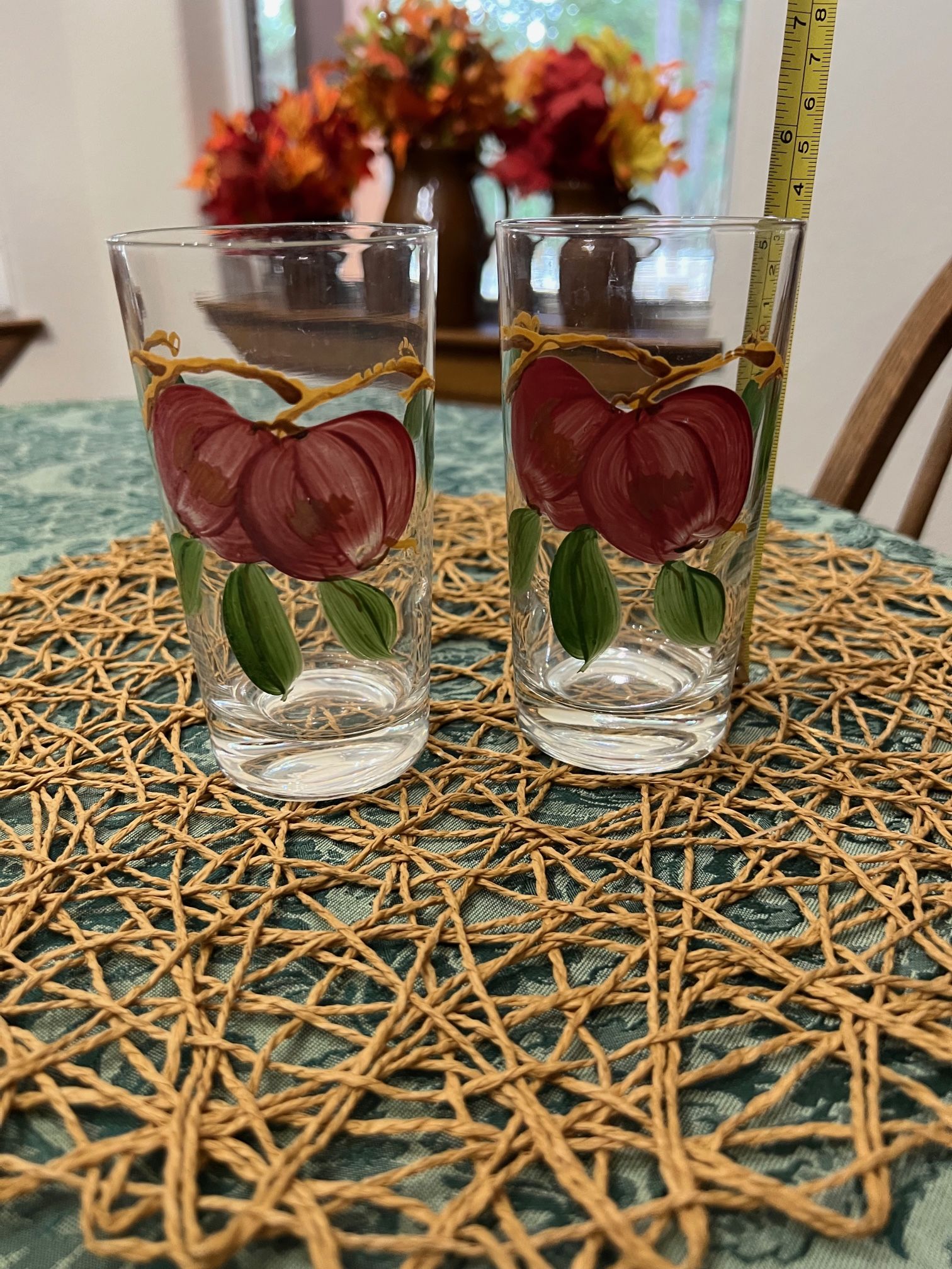 Pair of vintage 5” Apple glasses. For additional items for sale by us, scroll down.