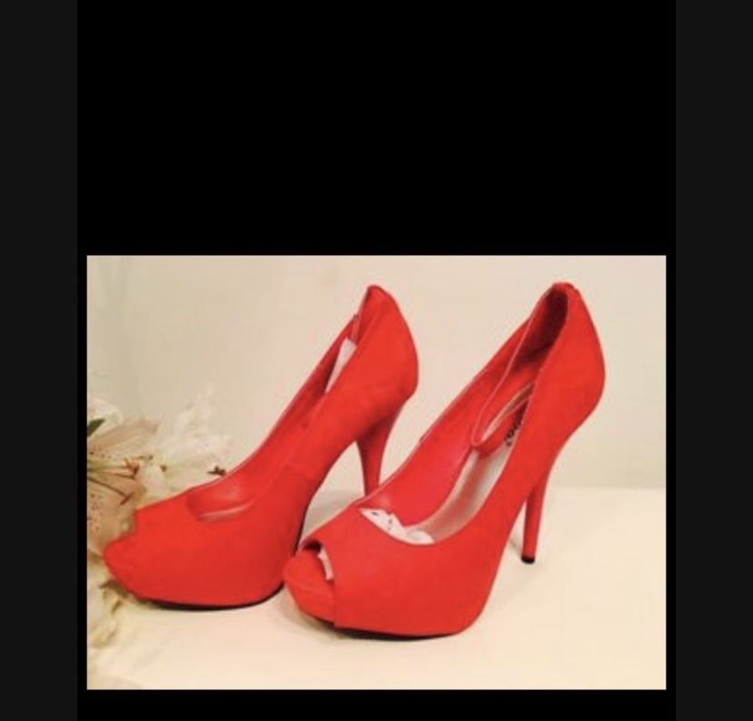 Perfect fall shoes. Brand new in boxes. Get ready for the holidays. Meeting the family and party away. Very comfortable shoes. Size 8, 8.5, 9. Colors: Red and Black available. Description: Smooth velvet felt -Strap open-toe shoes. Heels heights 4.5” with beautiful shiny heels. Original Price paid $65. Best offer, it's yours. Will meet for delivery in the DC area. I can also ship them to you.