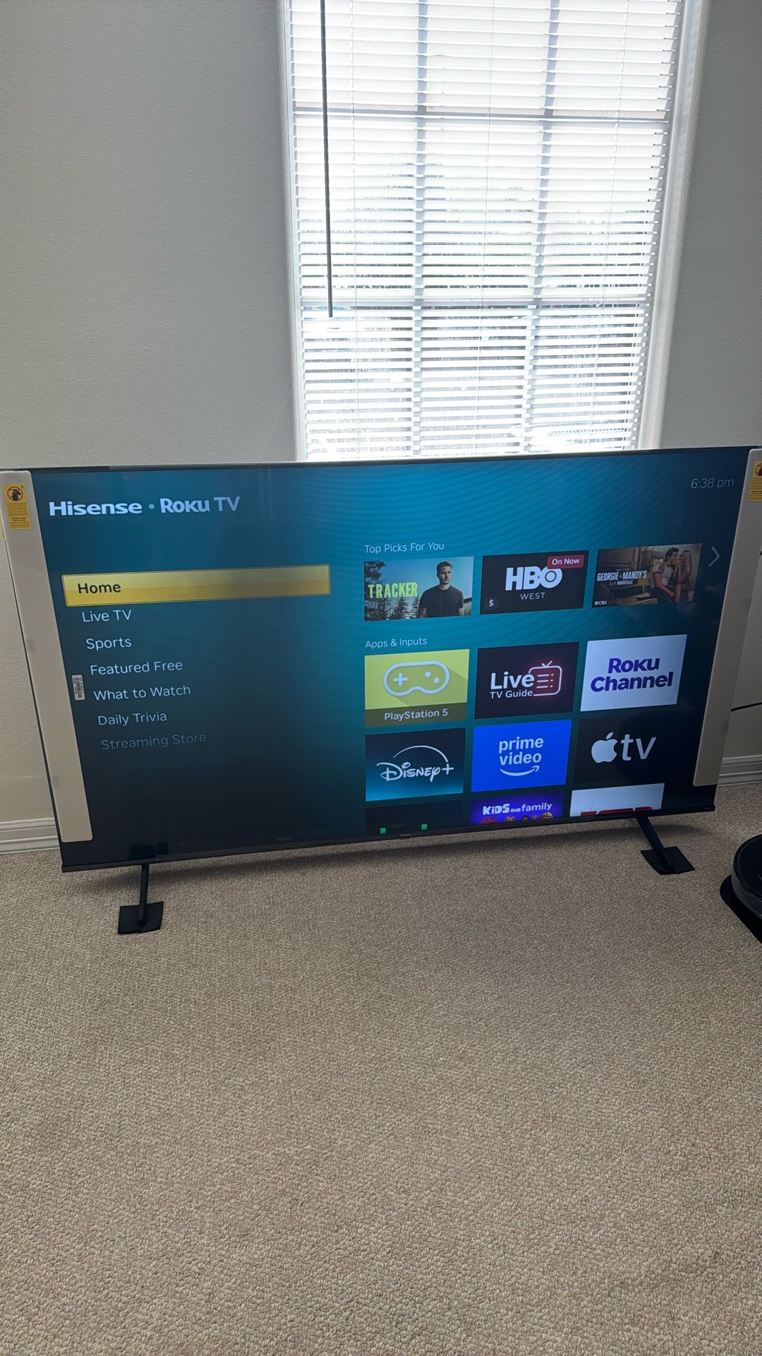 The Hisense Roku TV R6030 Series is designed with a gorgeous bezel-less design and packs incredible detail into it’s 4K Ultra HD Dolby Vision HDR-enhanced display. Plus, with Roku TV, it's easy to watch what you love with quick access to thousands of streaming channels, and live TV. 75" 4K UHD Hisense Roku TV R6030 SeriesKey Features The R6030 features a 4K Ultra High Definition picture, Dolby Vision HDR that boosts color and contrast, and Motion Rate 120 technology that makes it easier to follow fast action. Plus, the Roku operating system (OS) offers up thousands of free and paid channels, giving everyone in your household something to watch. TV is in very good condition, with no damage. Comes with remote. Barely used, Comes with power cable and remote control.