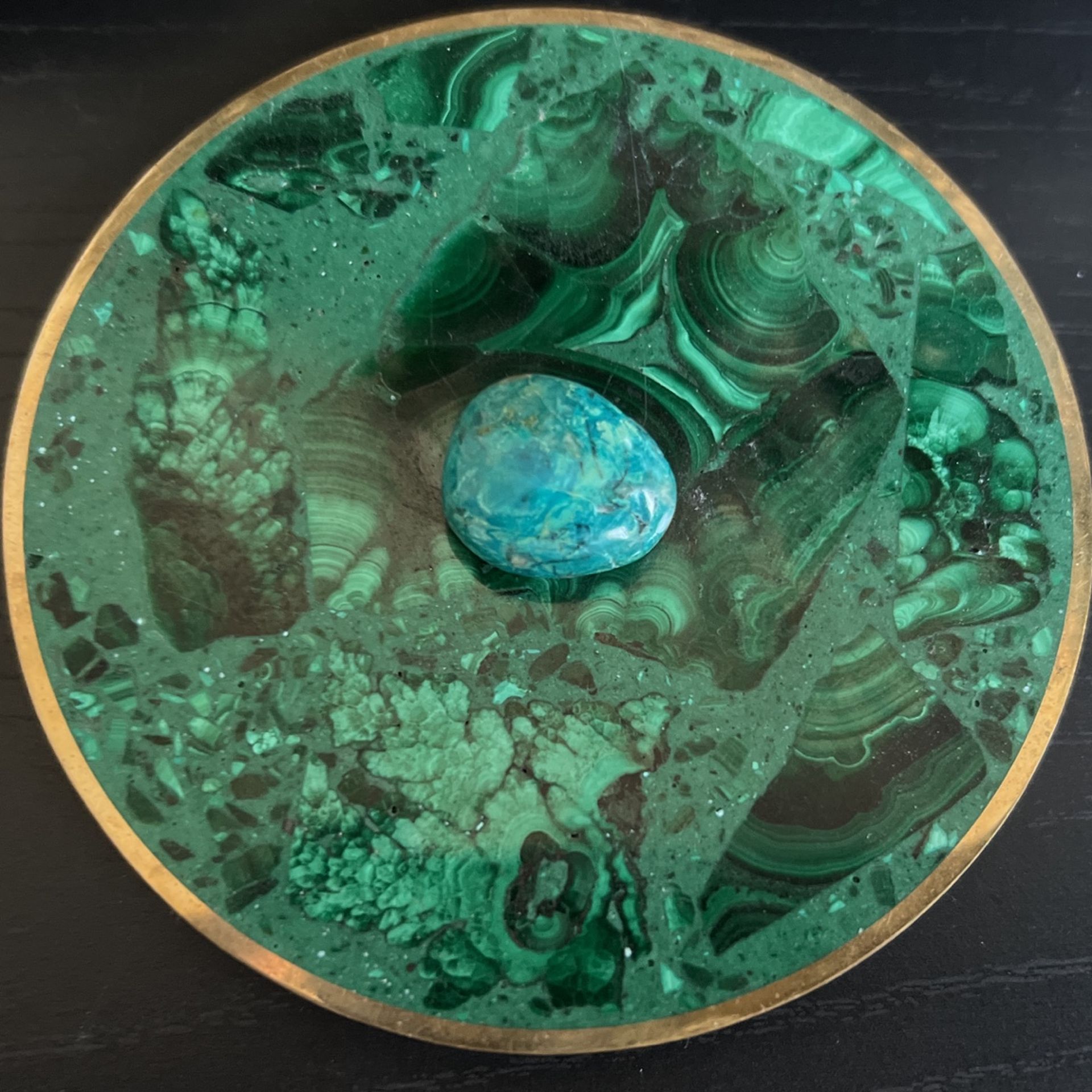 Small Cabbed Chrysocolla Piece ready to be installed on pendant! Chrysocolla is a copper-rich mineral that has existed for thousands of years. It was discovered by the ancient Egyptians and was used in many religious ceremonies and in jewelry. Chrysocolla was also found in Peru, where it was used by the ancient Incas in their jewelry and artwork.