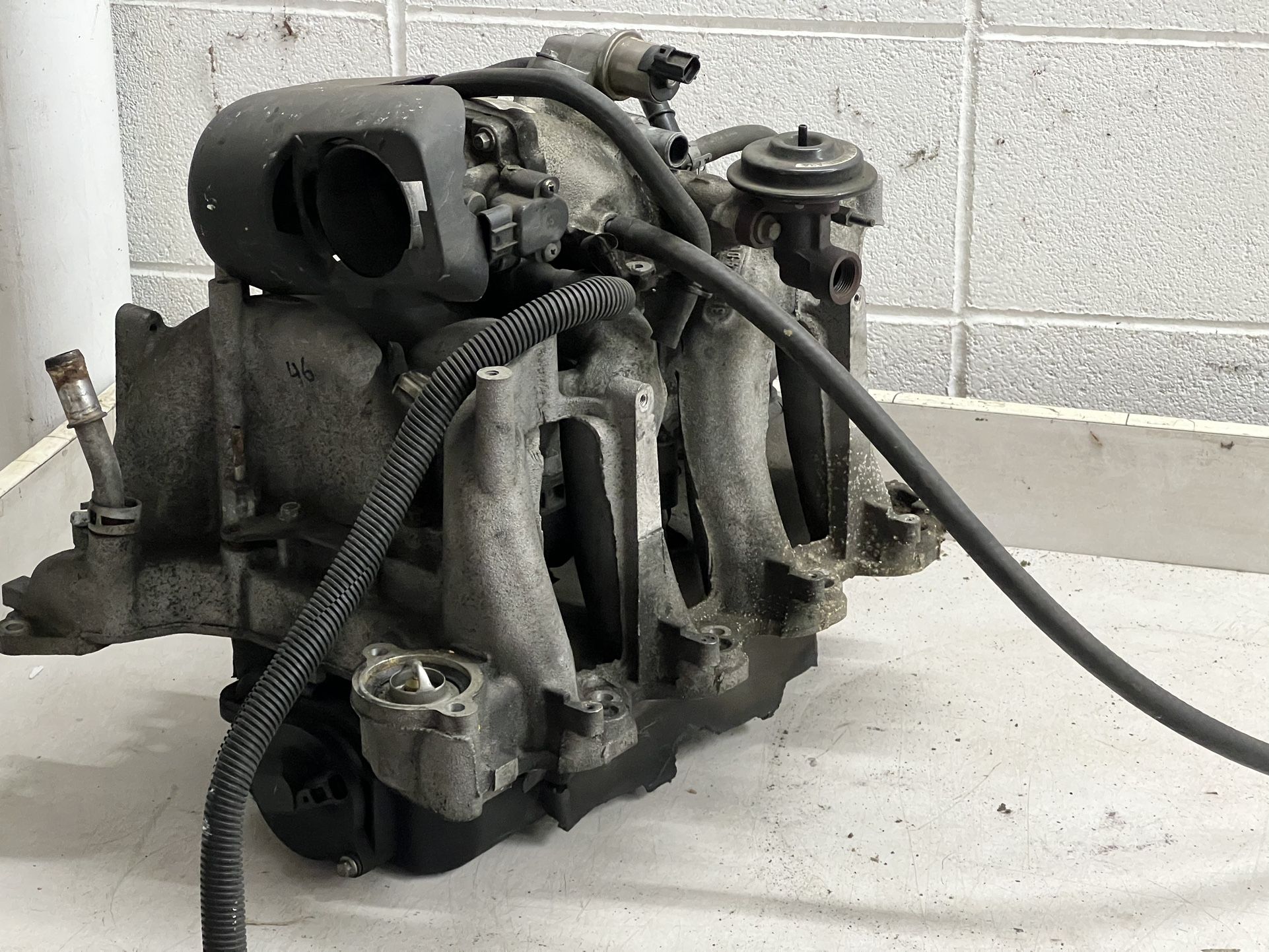 This was pulled from a 2004 Ford E-250 work van. It’s in good reusable condition, and is much better than the plastic piles of junk that Ford switched over to using, that would rot and typically need to be replaced each time the intake manifold gaskets started to leak. This only fits the 4.6L Triton engine. Asking $60