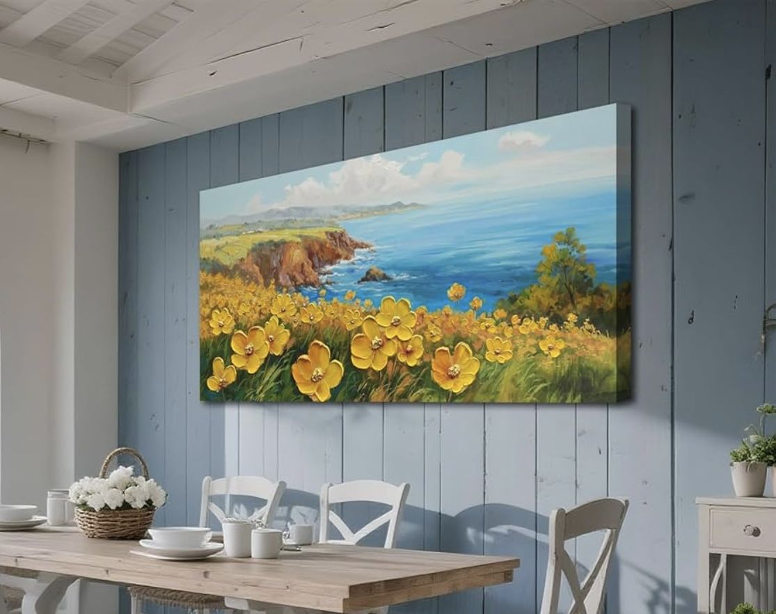 Acocifi Wall Art Bedroom Textured Artwork for Walls Large Wall Painting Living Room Decor, Coastal Floral Landscape Canvas Picture, Artwork Home Offic