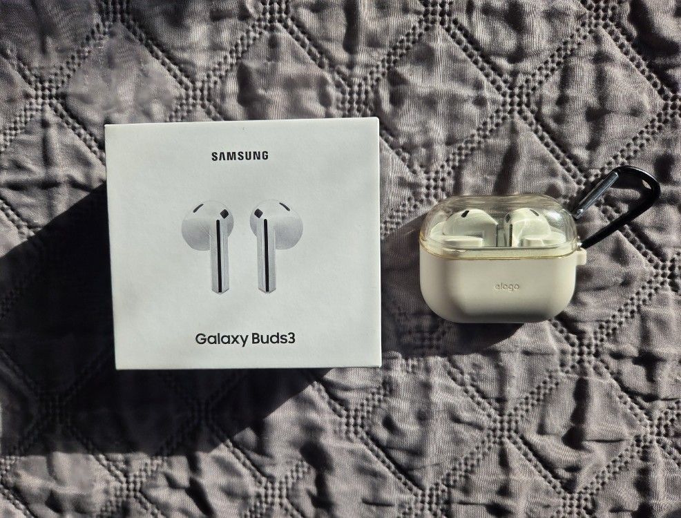 Samsung Galaxy Buds 3 Earbuds + Protective Cover Barely Used. No issues. White. Comes with a protective cover for the case. Earbuds / Headphones $60 (or best offer)