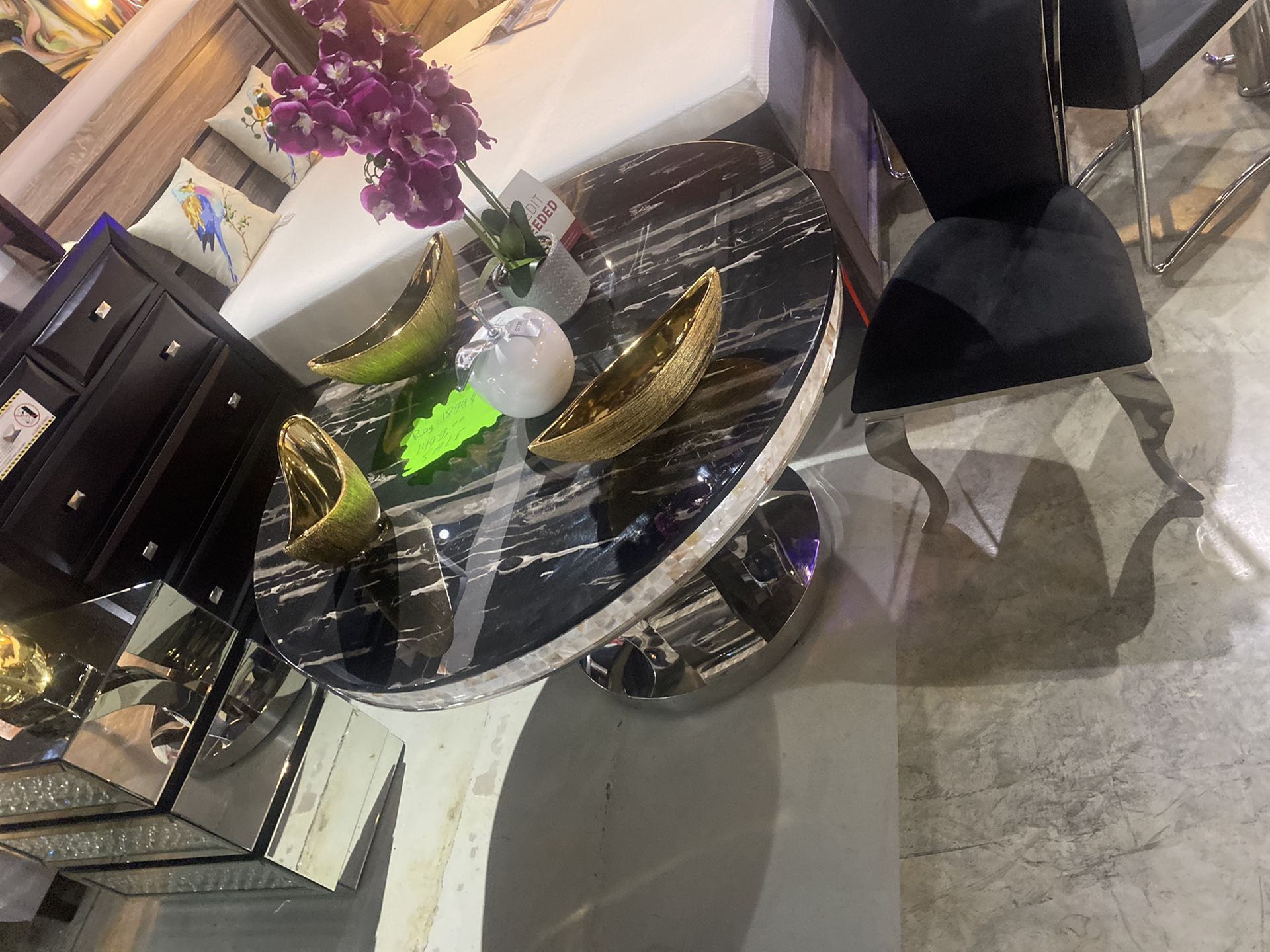 Marble Dining Table - Black and chrome table
