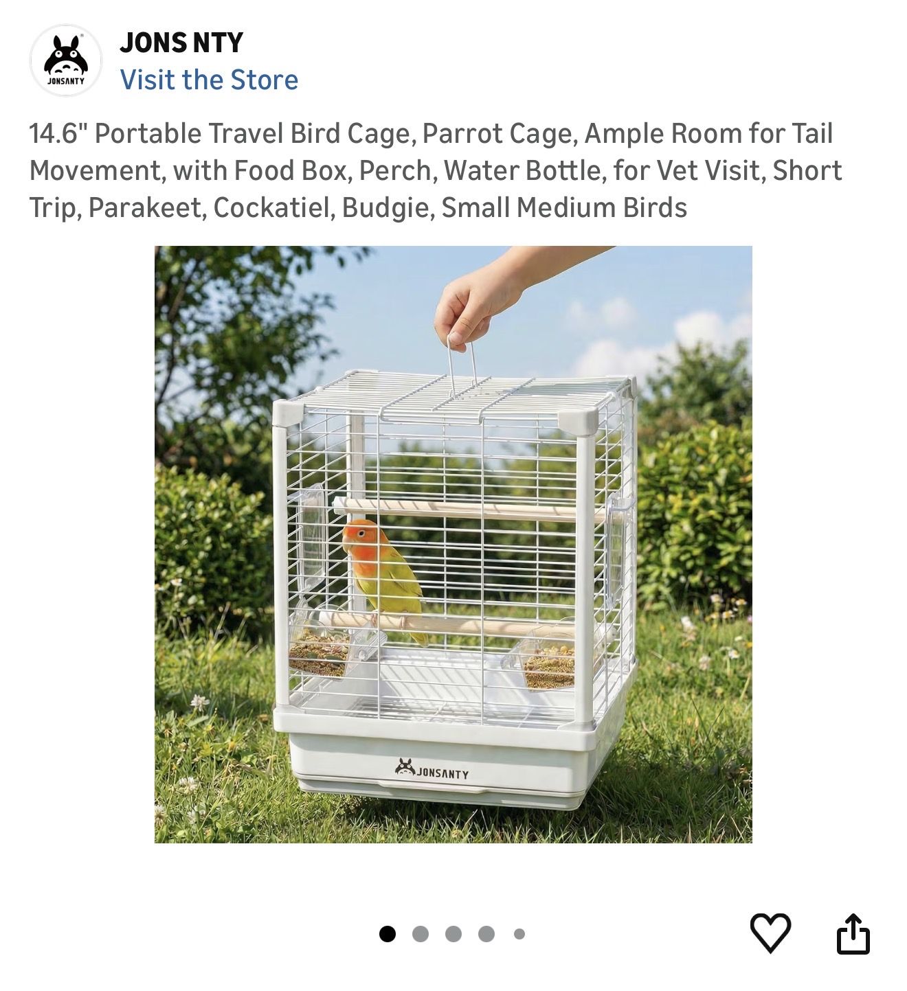 Brand New Bird Cage, Great for in Home or Traveling. White, 14.6” X 11.8” , Comes with 2 feeding Boxes , 1 Sandstone Porch, & 1 Watering Bottle Tube.