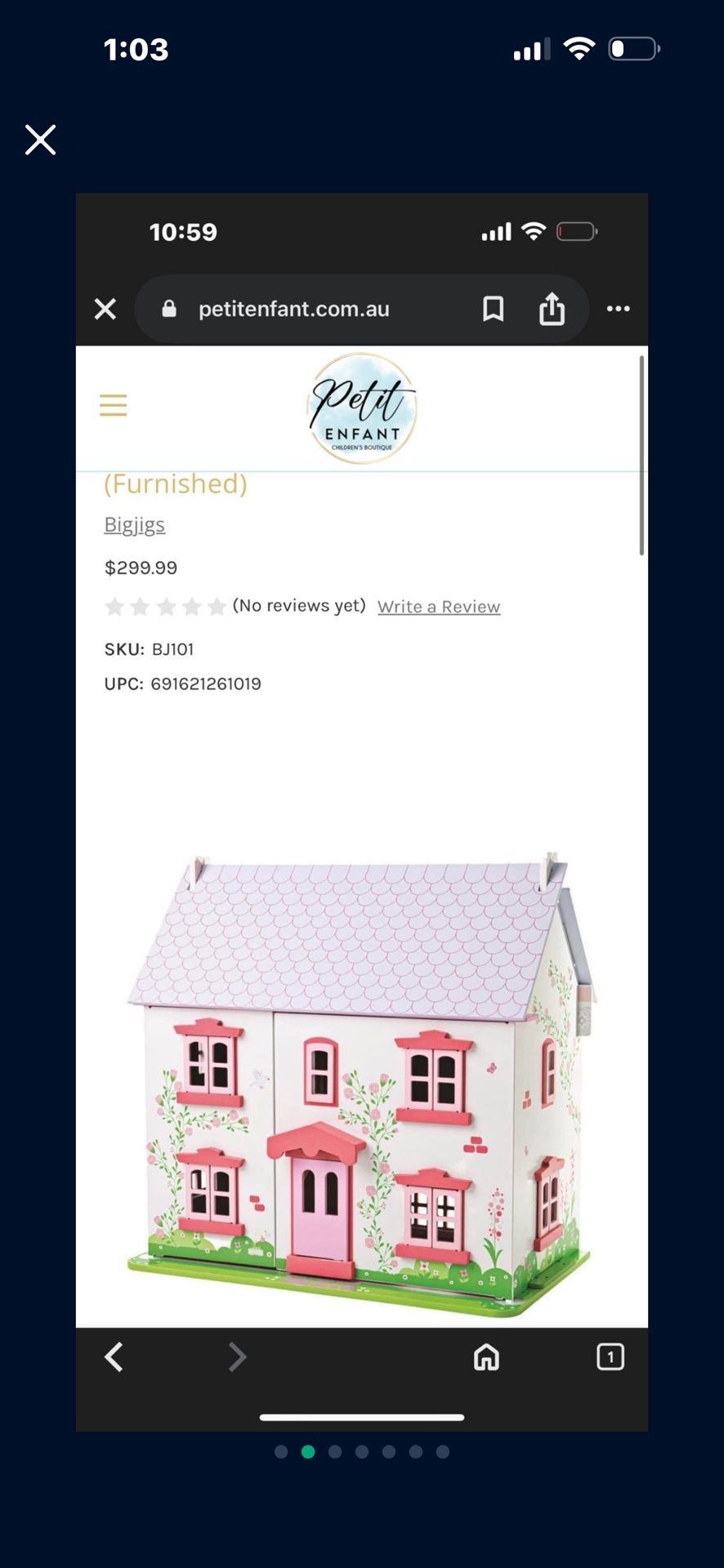 Bigjigs - Rose Cottage Dolls House (Furnished) Retail $299 Great condition. Bought the two set of family dolls and pets separately.