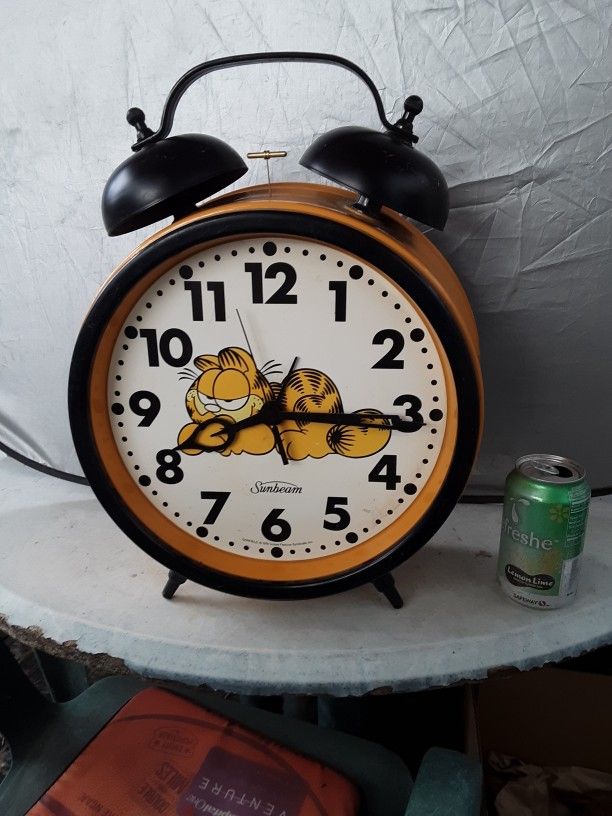 This is a really fun item. Vintage 70's, Sunbeam, giant Garfield cat clock. It's in great condition for age. I put in batteries and it has run just fine. Waited to post for a full 24 hours (can send video by email if you'd like to see it working). It did stop after a day and a half, but I just nudged the second hand and it started again - could be the batteries(?)...it has now been running for almost 3 full days, just fine. I just wouldn't count on it completely unless maybe you use brand new expensive batteries 😉. I can't figure out how to make the alarm go off. One knob is missing on back, as is the battery compartment door. There is no plastic on the front so setting etc. Can be done from the front (or use needle nose where knob missing). Asking $45 OBO ☆IF THE AD IS UP IT'S AVAILABLE. ☆TRACFONE HAS LIMITED TEXTS AND TALK - EMAIL WORKS FINE. ☆MEET WILL TAKE PLACE IN THE GENERAL ARE SPECIFIED ON THE MAP IN THE POST.