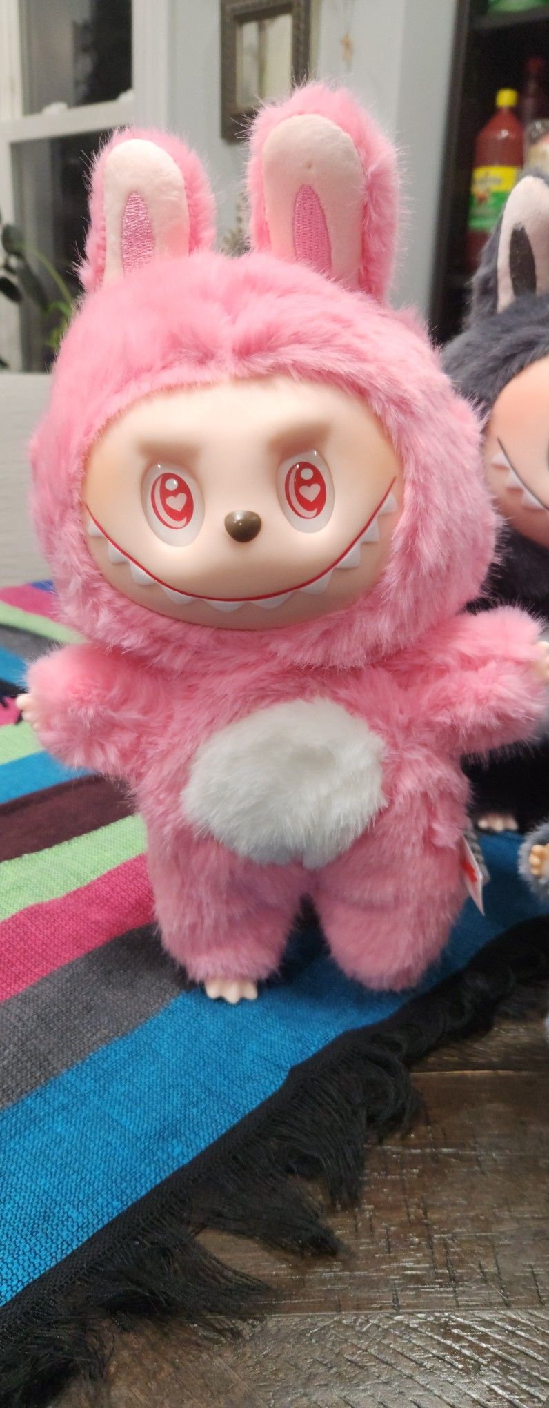 MEDIUM SIZE LABUBUS ON 4 DIFERENT COLORS, PINK ,BROWN, GREY AND BLUE SUPER SOFT AND π CUTE LABUBUS MEDIANOS EN DIFERENTE COLORES CAFE ,GRIS AZUL Y ROSA,MUY BONITOS SUPER SUAVES