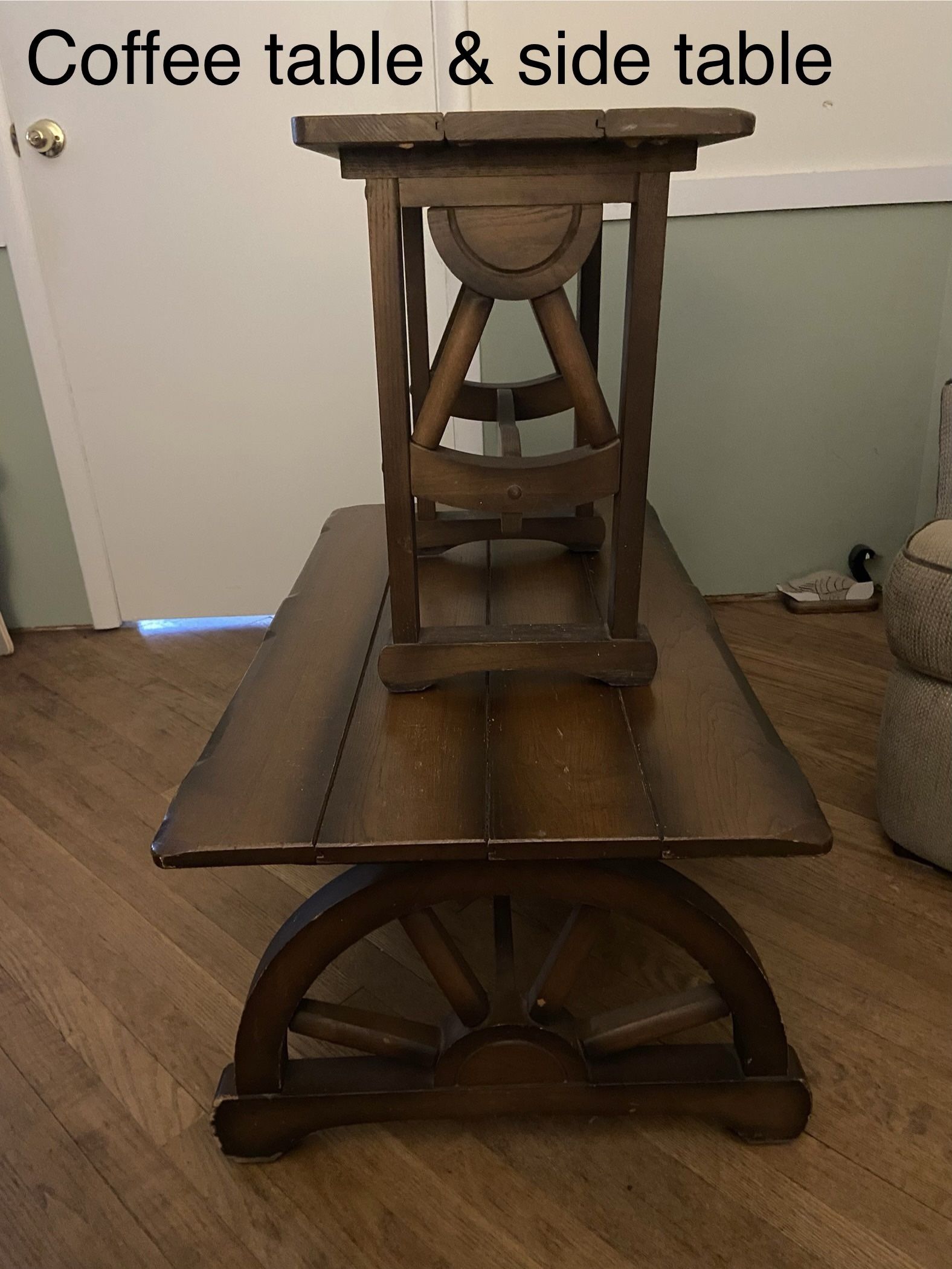 Farmhouse style coffee table with matching side table part of an estate sale. Many items available. Located in Catonsville