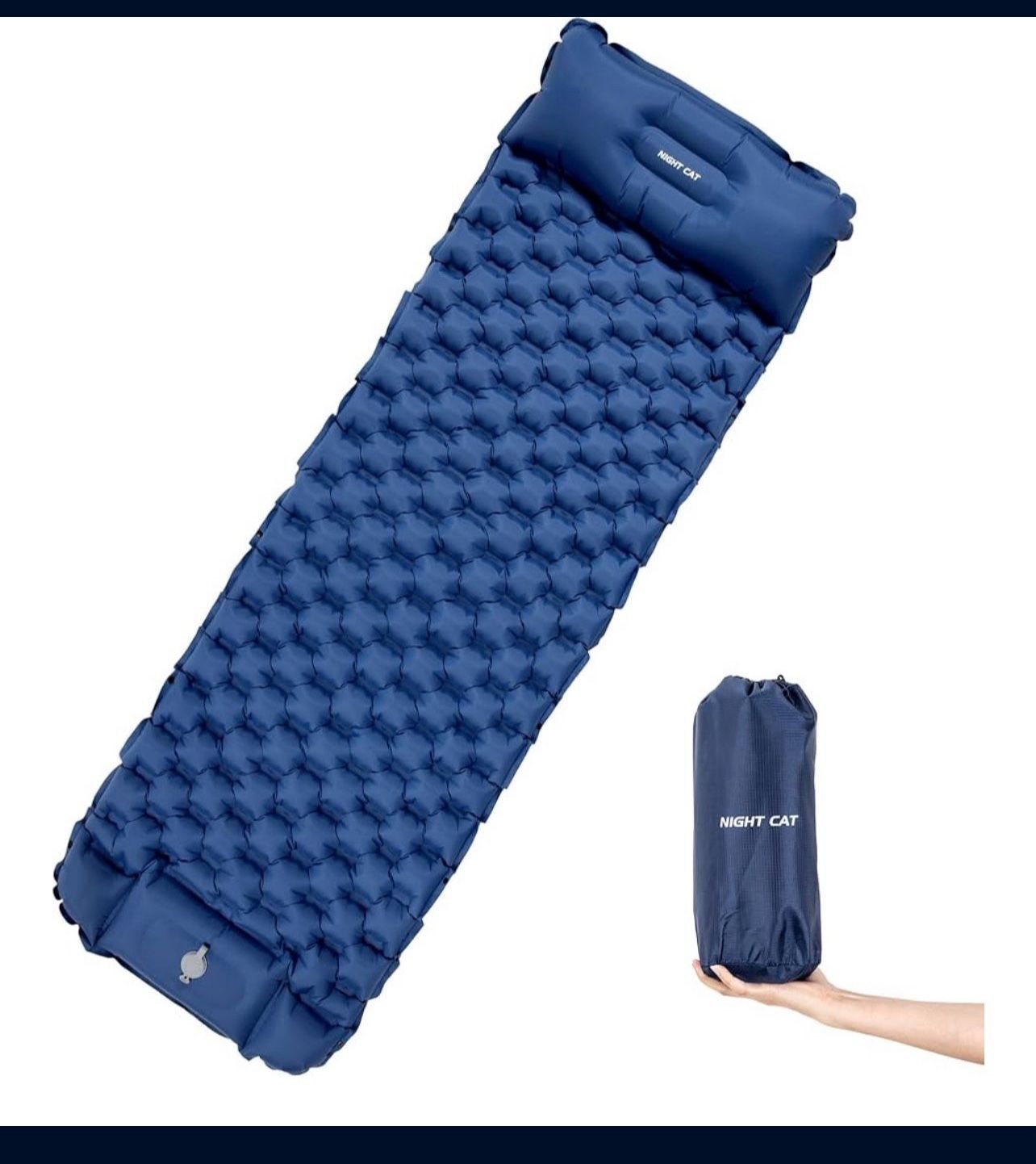 Night Cat Inflatable Sleeping Pads Mat Bed with Pillow Foot Pump for Camping Backpacking Hiking Ultra-Light Compact Comfortable Extendable 77"x25.5"