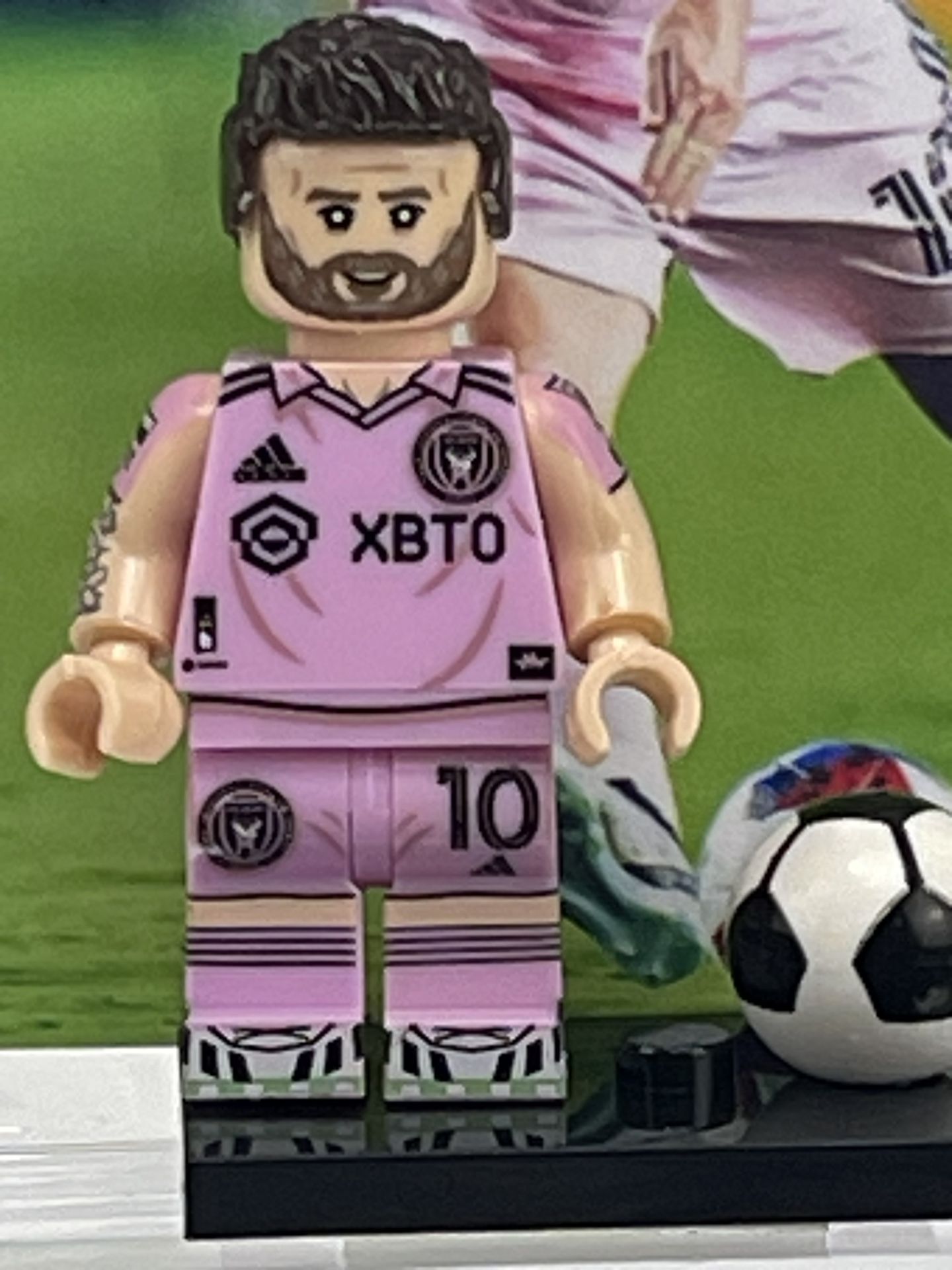 You’re buying a custom minifigure of Messi inside an acrylic Display with a custom background.