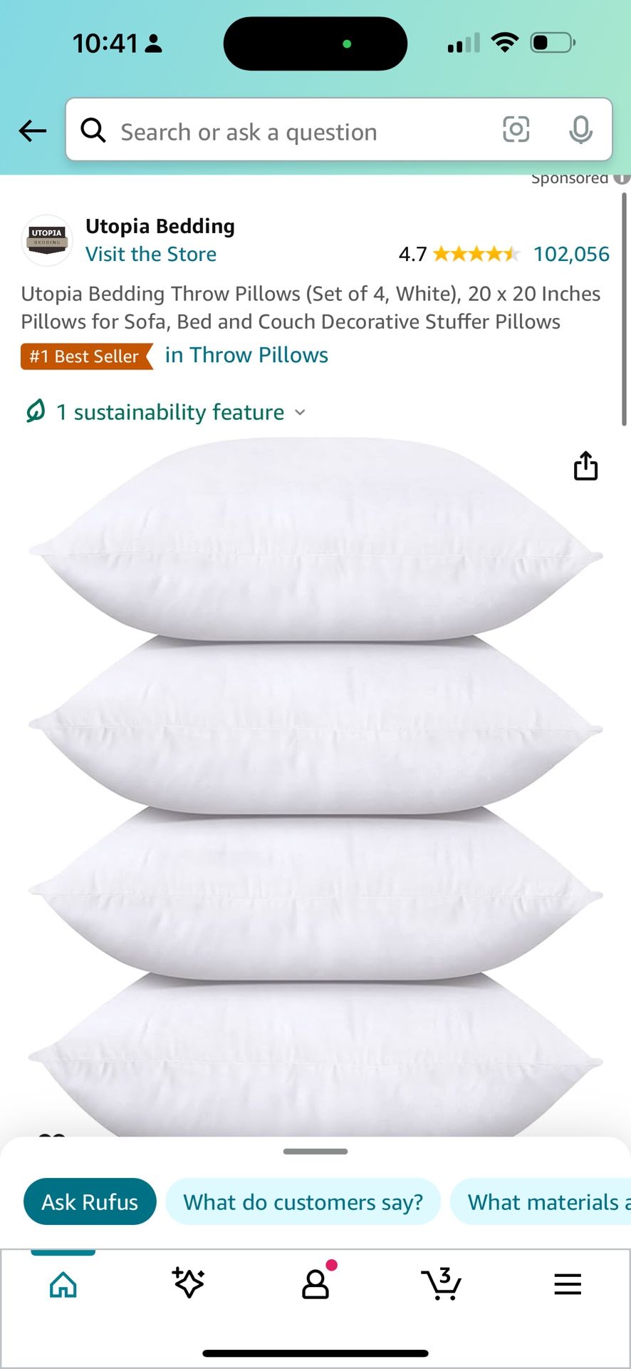 Utopia Bedding Throw Pillows (Set of 4, White), 20 x 20 Inches Pillows for Sofa, Bed and Couch Decorative Stuffer Pillows $18