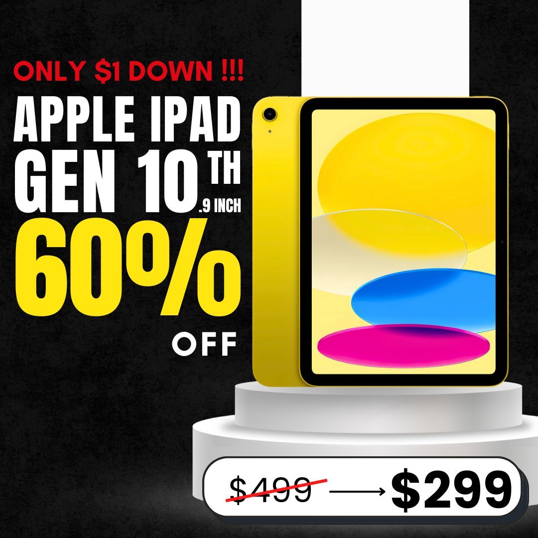 📱 iPad 10ª Gen 10.9" (WiFi, Nuevo) – $299 o $1 de Entrada | Ahorra 60% + Hasta 1 Año de Garantía 🔥