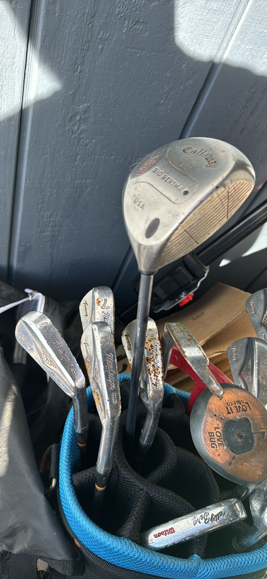 Random Assortment Of golf clubs + Golf Balls + Bag(wedge, 9 Iron, Putter, Driver)