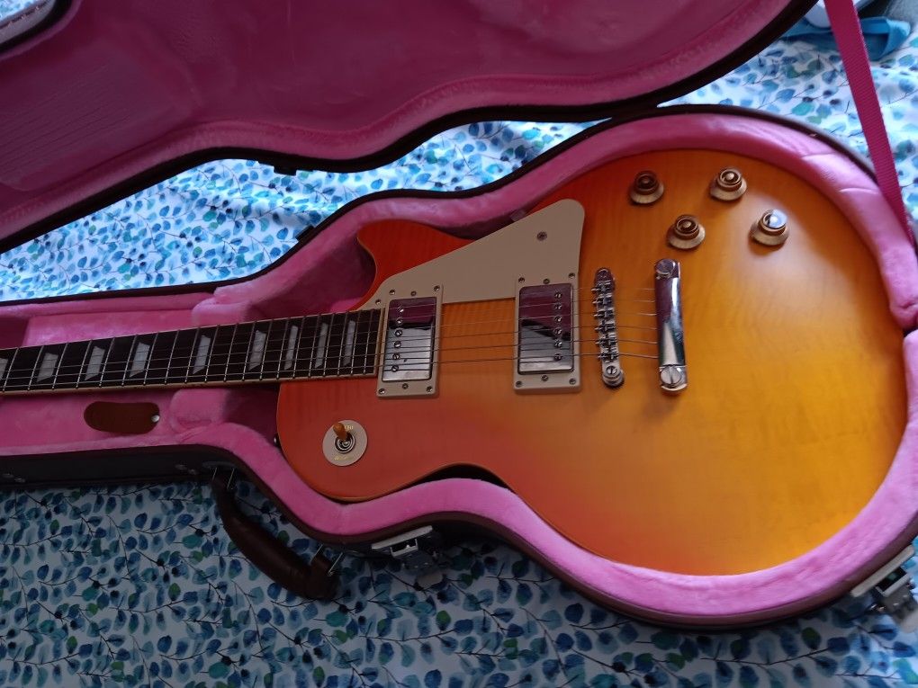 Epiphone 59 Les Paul with original hardshell case. Its a 2 piece body with Gibson pickups and electronics.