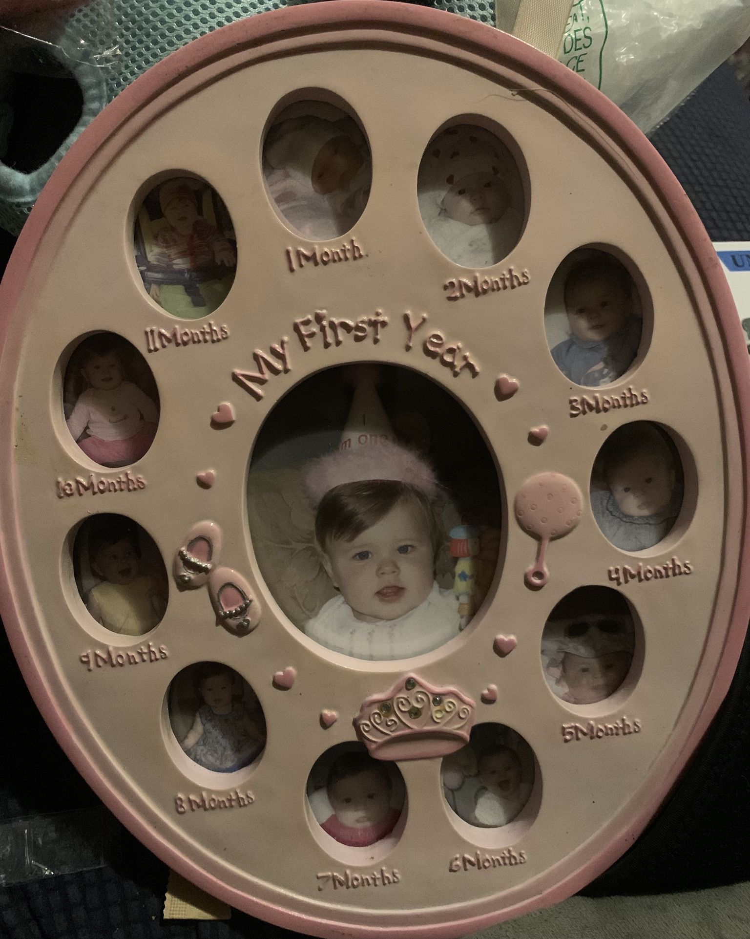 New Baby's My First Memories Ceramic Photo Frame. The frame display a baby's growth from 1 month to 11 months, with a central space for a 12th month or first birthday picture. Perfect gift for baby shower.
