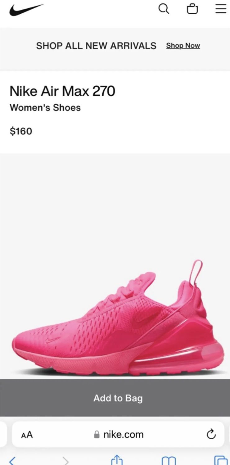 Woman’s Hot Pink Nike Air Max 270 Worn twice shoe is still practically new. I have the original shoes box as well size 9.5