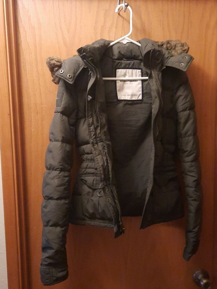 Girls coat / jacket. Used. Abercrombie size xl (youth) would fit an xs-small woman. Dark green color.