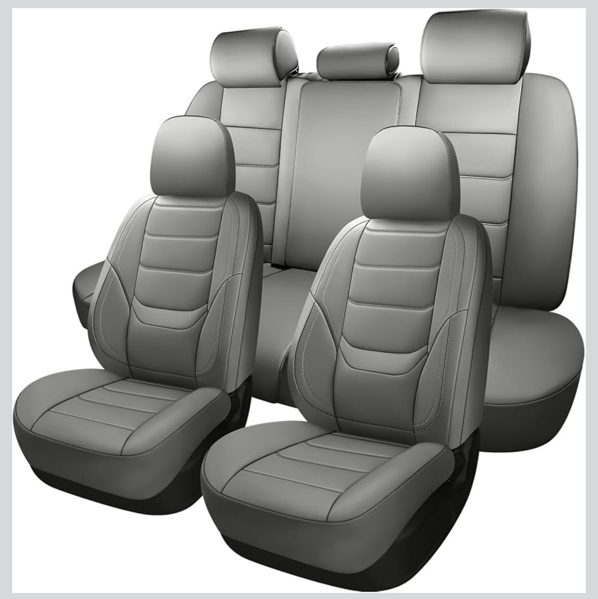 Have a lightly used set of automotive seat covers, in a grey PU Leather material. Both front and rear seats included. I really like the set and was happy with the material. However, the fit was a bit too small for my full-size pickup truck (F-150). Would work great in a mid-size SUV, truck, or car. They are in good, clean, used condition.