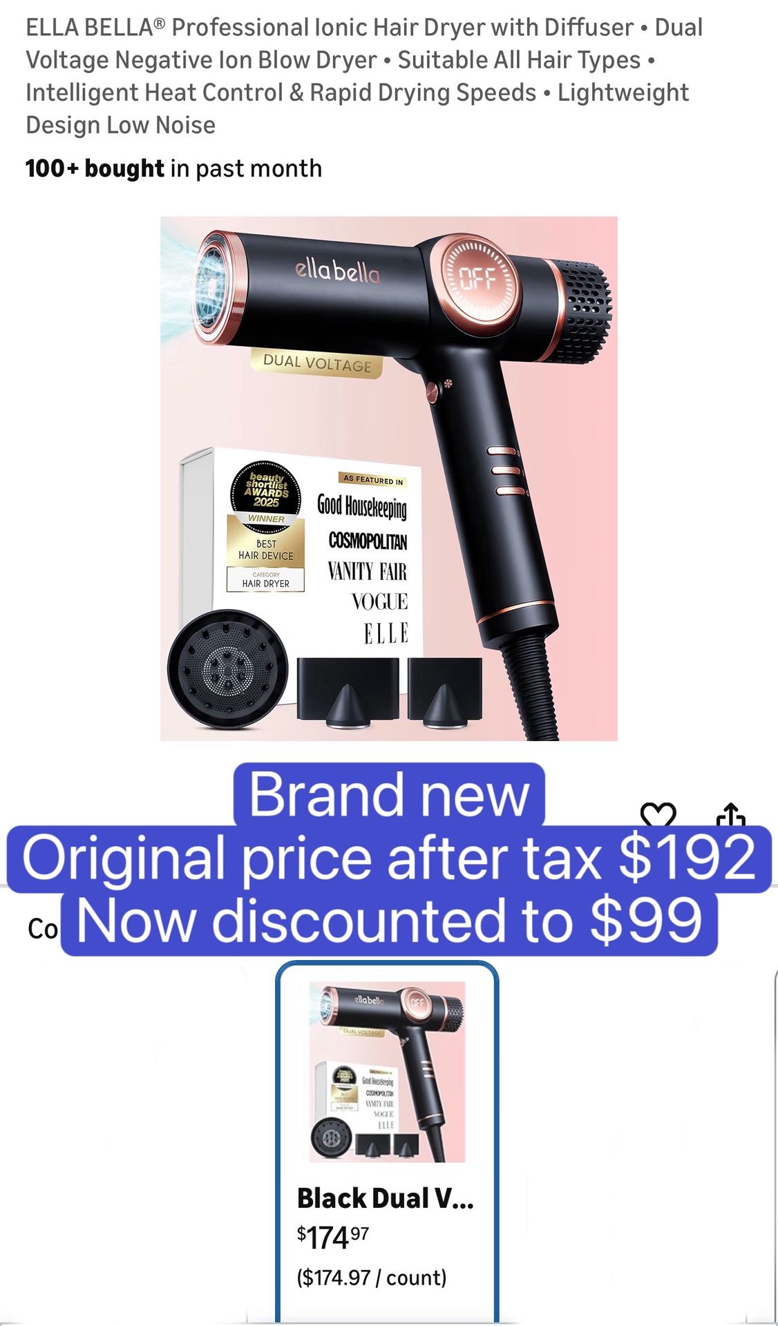 10 in stock Professional Ionic Hair Dryer with Diffuser • Dual Voltage Negative Ion Blow Dryer • Suitable All Hair Types • Intelligent Heat Control & Rapid Drying Speeds • Lightweight Design Low Noise