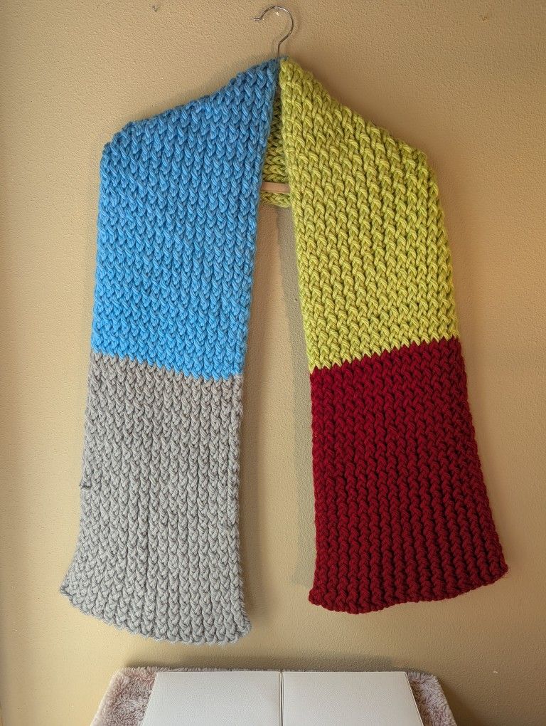 Approximately 11.5" x 60". I made this a couple years ago. Super soft and warm. Thick enough to be a wrap around the shoulders.