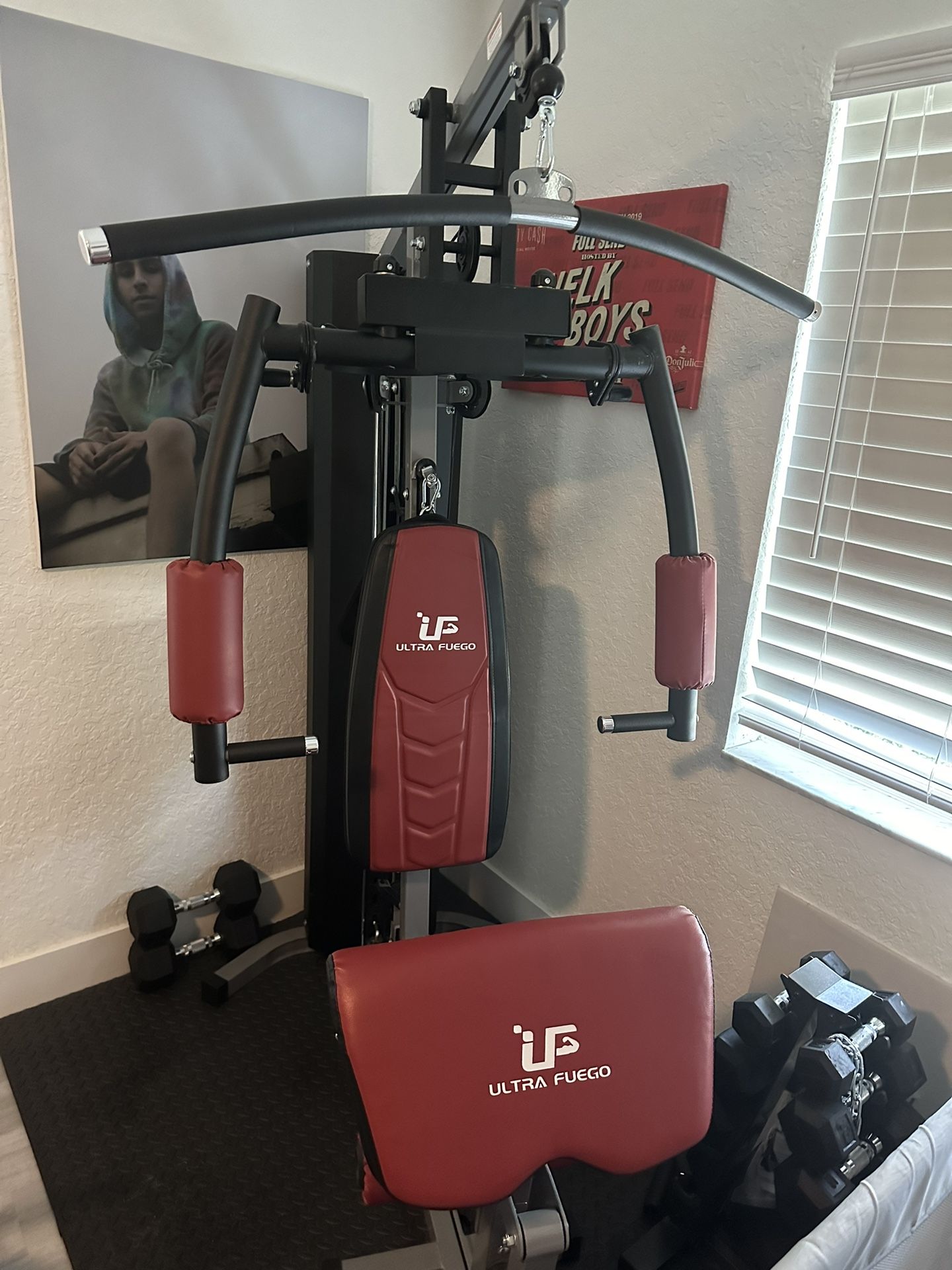 Marca: ULTRA FUEGO Estación de entrenamiento multifuncional con sistema de poleas, brazo y pierna para entrenamiento de cuerpo completo