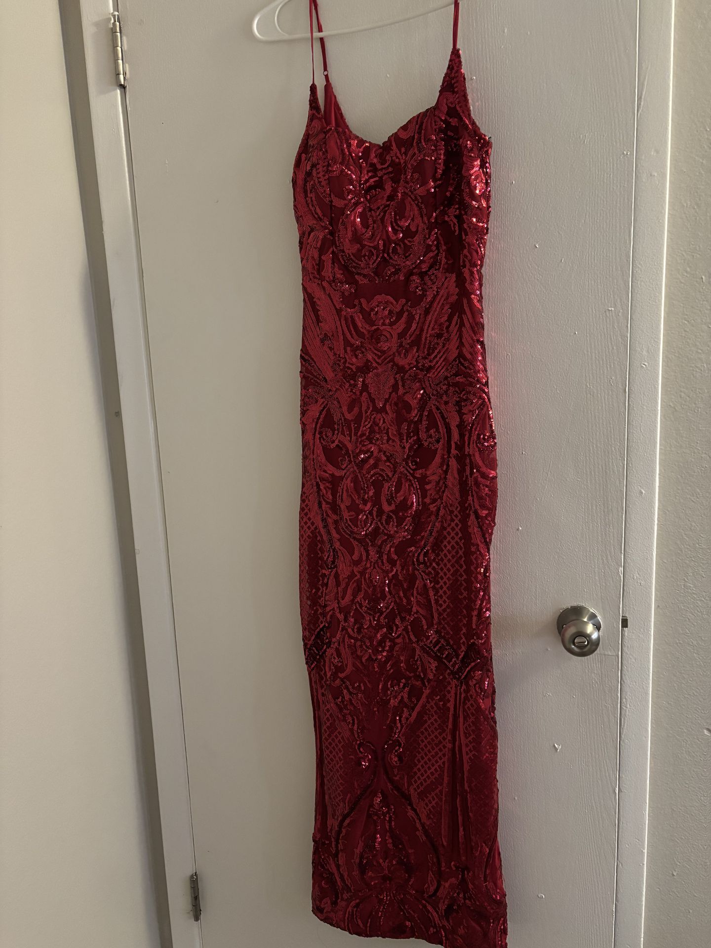 Beautiful dresses for sale! Only worn once. All size M. Red dress has sequins, with a split on the side. Green dress has a satin feel, with a slit on the side. Champagne dress has a satin feel, with a slit on the side. Selling all 3 for $100 or: Red: $60 Green: $20 Champagne: $20