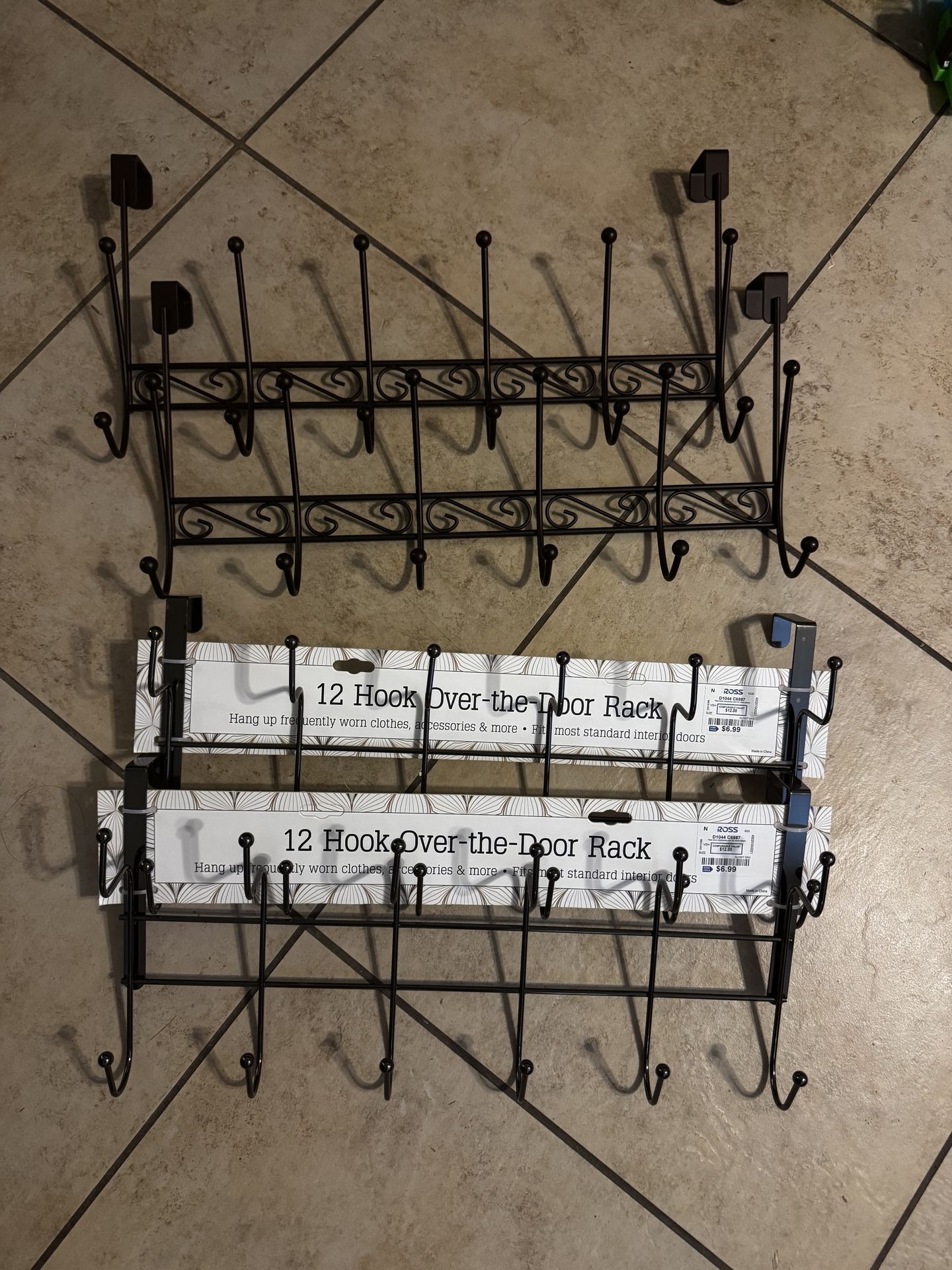 2 of 2 are the same = 4 over the door racks bronze in color All new - 2 new without tags Looking to sell all in one transaction Went with a different color - my loss your gain